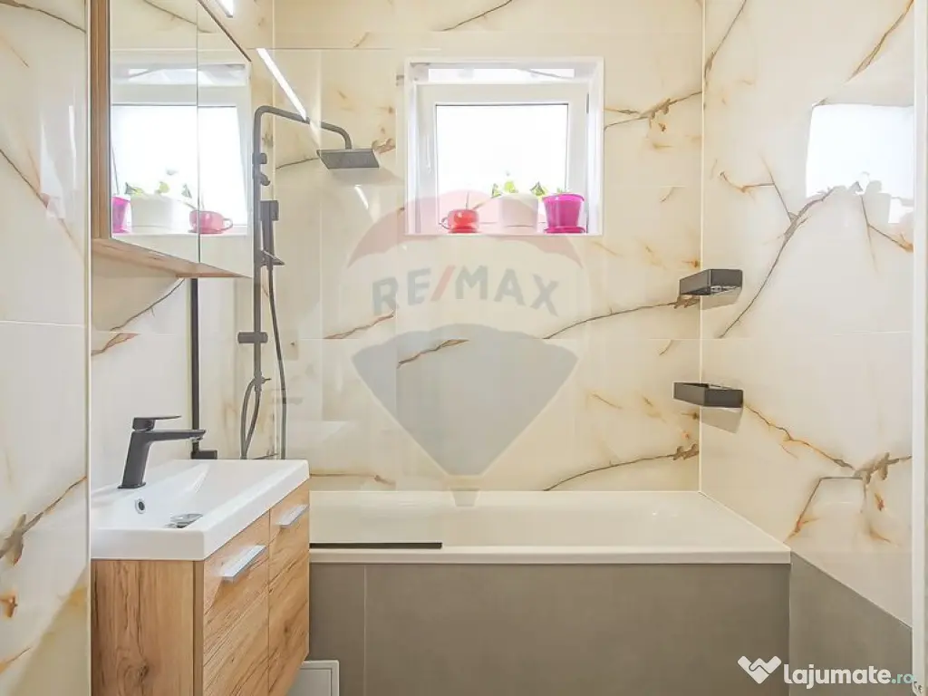 Va propun spre achiziție un apartament de 3 camere situat în Avantgarden 3 Bartolomeu, cu 75 mp utili, la care se adaugă un balcon generos de 14,29 mp, complet renovat, mobilat și utilat în 2025, gata de mutare. O locuință situată pe strada Pelicanului nr. 8 în blocul B 41 care bifează criteriile esențiale căutate de familii și de cei aflați în proces de relocare. Compartimentarea este ideală pentru viața de familie: două băi separate, oferind intimitate fiecărui membru al familiei și confort pentru musafiri. Baia principală este dotată cu cadă și geam pentru aerisire naturală, iar cea de-a doua baie cu duș walk-in. Apartamentul este situat la etaj intermediar (etajul 1) al unui imobil cu 5 etaje, beneficiază de orientare sud-vest și de multă lumină naturală pe tot parcursul zilei. Balconul, cu acces din living și din ambele dormitoare, extinde firesc spațiul interior și contribuie la senzația de confort și deschidere. Renovarea a fost realizată cu atenție la detalii, folosind finisaje premium și mobilier de calitate de la Staer și Mobexpert, completate de elemente moderne precum întrerupătoarele touch, care subliniază caracterul contemporan al locuinței. Proprietatea dispune de loc de parcare la prețul de 8500 euro și boxă la demisol inclusă în preț, completând pachetul unei locuințe funcționale și bine organizate. Avantgarden 3 Bartolomeu este un cartier destinat familiilor, bine structurat și aerisit, unde „Acasă” este un sentiment general. Accesul rapid către Aeroportul Internațional Brașov-Ghimbav reprezintă un avantaj important pentru cei care călătoresc frecvent sau se relochează. În imediata proximitate a blocului exista parc, grădiniță privata, grădiniță de stat nouă (deschidere în septembrie 2026), stații de autobuz către Centrul Vechi, Centrul Civic și Coresi, supermarketuri și servicii, iar în curând se vor deschide Kaufland, o sală de fitness și un nou centru comercial. Pentru mai multe detalii sau pentru a programa o vizionare, vă stau la dispoziție. Confort: 1 Tip imobil: Bloc de apartamente Număr Băi: 2 Posibilitate parcare: Da Nr. locuri parcare: 1