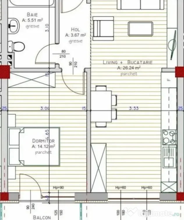 Compartimentarea se prezinta astfel: bucataria open space cu livingul, hol, 1 dormitor, o baie, balcon si gradina de 30 mp.