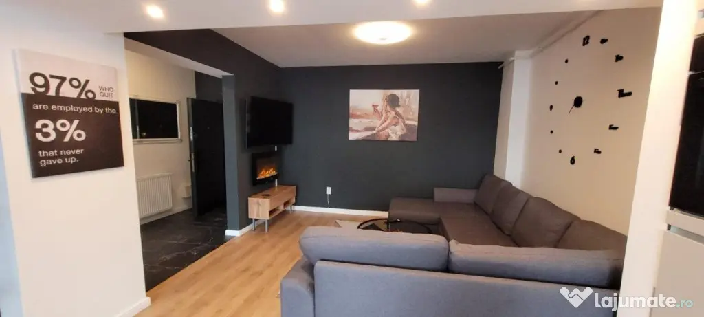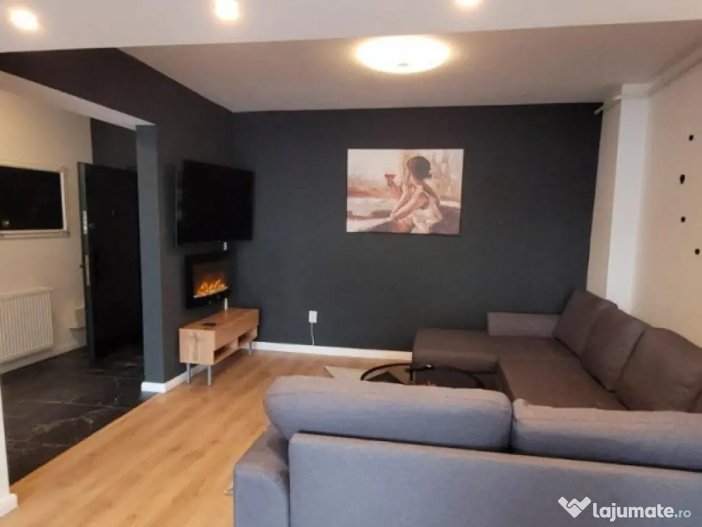 Se vinde la stadiul Finisat, finisajele fiind de o calitate superioara utilat cu semineu, smart TV etc., baia utilata complet, centrala termica si calorifere, geamuri termopan cu tamplarie PVC si usa metalica antiefractie la intrare cu sistem de acces smart, interfon cu touchscreen si camera video.
