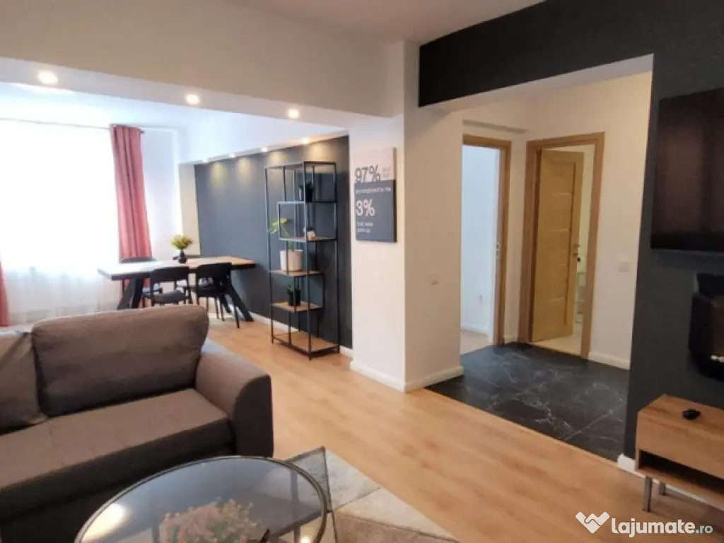 Apartamentul are o suprafata utila de 58 mp si este situat intr-un imobil nou, la parter.