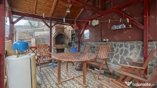 Casa are o suprafata utila de 145 mp si o structura solida din caramina, pe o suprafata de 337 mp a terenului. Imobilul este amplasat pe P+M, cu intrari separate, care au o compartimentare decomandata. Este compus din 5 camere, 2 holuri, 1 living, 2 bucatarii, 2 bai, 1 dressing, 1 debara si o camera tehnica. Iar pe afara avem 1 magazie, 1 foisor cu gratar aamenajat si o fantanita draguta.