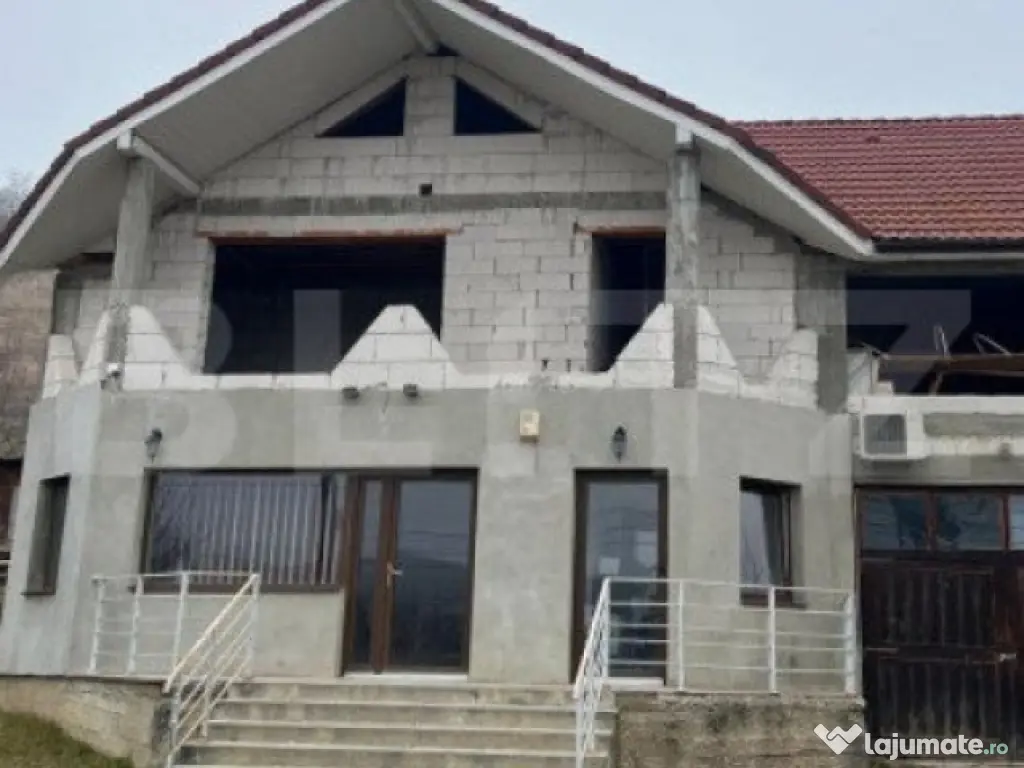 Casă spațioasă cu potențial deosebit, situată în comuna Căianu, la doar 20 km de aeroportul din Cluj-Napoca – locul perfect pentru cei care își doresc liniște, aer curat și totuși acces rapid la oraș. Proprietatea se desfășoară pe două nivele, cu o suprafață totală de 240 mp și un teren generos de 700 mp, oferind spațiu amplu atât pentru locuire, cât și pentru grădină, terasă sau zonă de relaxare. Parterul este complet amenajat și funcțional, fiind compus dintr-un open space generos, baie modernă, depozit, cameră tehnică și garaj integrat – ideal pentru confortul zilnic și pentru activități gospodărești. Este dotat cu centrală pe lemne și geamuri termopan, asigurând eficiență termică și costuri reduse. Etajul superior oferă libertatea de a-ți personaliza casa exact cum îți dorești – în prezent este gândit pentru living, două dormitoare și o baie, dar poate fi recompartimentat în funcție de nevoile tale. Este oportunitatea perfectă de a-ți pune amprenta personală asupra designului și organizării spațiului. Curtea largă și terenul de 700 mp oferă intimitate și posibilitatea amenajării unei grădini, foișor sau spațiu de joacă pentru copii, iar accesul facil spre Cluj face ca această locuință să fie potrivită atât ca reședință permanentă, cât și ca casă de vacanță. Proprietatea se vinde sau se oferă la schimb cu apartament în Cluj-Napoca, reprezentând o oportunitate excelentă pentru cei care vor o locuință spațioasă, bine construită, aproape de oraș, dar în mijlocul naturii. Utilitati: canalizare, curent trifazic, apa. Este casa care îți oferă spațiu, liniște și libertatea de a o personaliza după gustul tău – o investiție sigură într-o zonă aflată în dezvoltare continuă. Cod ofertă / ID BLITZ: P142746 Id intern: P142746 Număr niveluri imobil: 1 Număr Băi: 2 Apă Canalizare