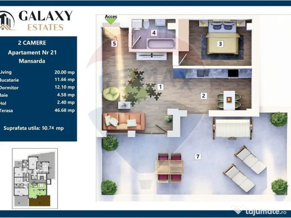 COMISION 0% Galaxy Estates – Apartamente moderne pe Nicolae Labiș, Brașov Galaxy Estates Brașov lansează un nou proiect rezidențial într-o locație privilegiată – Strada Nicolae Labiș. Ansamblul oferă un echilibru ideal între confortul urban, intimitatea unei comunități restrânse și priveliști spectaculoase către munți. Proiectul include apartamente de 2 și 3 camere, cu balcoane sau terase generoase, perfect adaptate stilului de viață contemporan. Două dintre apartamentele cu 3 camere beneficiază chiar de câte două balcoane. Dotări și facilități premium: -Încălzire în pardoseală -Izolație fonică între niveluri -Tâmplărie PVC cu 3 foi de sticlă -Centrală comună pentru eficiență energetică -Video interfon Suprafețele utile variază între 50 și 80 mp, iar spațiile exterioare sunt gândite pentru confort: -Balcoane între 5–8 mp -Terase între 11–90 mp, în funcție de tipul apartamentului Structura complexului: -Parter: 5 apartamente -Etaj 1: 6 apartamente, din care 2 vandute -Etaj 2: 6 apartamente -Mansardă: 4 apartamente Parcări & boxe: -Parcări supraterane: de la 6.500 EUR + TVA -Parcări subterane: de la 9.000 EUR + TVA -Boxe de depozitare: de la 1.000 EUR/mp Locație & stil de viață Situat într-o zonă liniștită, dar foarte accesibilă, Galaxy Estates Nicolae Labiș oferă acces rapid către zone comerciale, școli, spitale și mijloace de transport public. Terasele generoase și liniștea cartierului creează o legătură firească între natura urbană și intimitatea locuirii moderne. Galaxy Estates nu este la primul proiect. Dezvoltatorul are deja un ansamblu finalizat, pozele se pot vedea atașate, cu apartamente livrate, și un al doilea proiect aflat în execuție. Lucrările pentru noul ansamblu vor începe în 2026, iar predarea este estimată pentru august 2027. Pentru detalii, listă completă de apartamente sau programarea unei vizionări, nu ezitați să ne contactați! Galaxy Estates – o alegere sigură pentru locuire sau investiție. Pentru detalii, listă completă de apartamente sau programarea unei vizionări, nu ezitați să ne contactați! Pretul este pentru plata cash si nu include TVA. Pentru rate si credit solicitati lista de preturi! Galaxy Estates – o alegere sigură pentru locuire sau investiție. whatsapp - 0726102852 Confort: 1 Tip imobil: Bloc de apartamente Număr Băi: 1 Posibilitate parcare: Nu