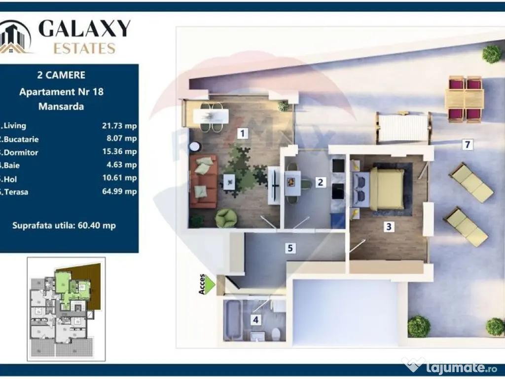 COMISION 0% Galaxy Estates – Apartamente moderne pe Nicolae Labiș, Brașov Galaxy Estates Brașov lansează un nou proiect rezidențial într-o locație privilegiată – Strada Nicolae Labiș. Ansamblul oferă un echilibru ideal între confortul urban, intimitatea unei comunități restrânse și priveliști spectaculoase către munți. Proiectul include apartamente de 2 și 3 camere, cu balcoane sau terase generoase, perfect adaptate stilului de viață contemporan. Două dintre apartamentele cu 3 camere beneficiază chiar de câte două balcoane. Dotări și facilități premium: -Încălzire în pardoseală -Izolație fonică între niveluri -Tâmplărie PVC cu 3 foi de sticlă -Centrală comună pentru eficiență energetică -Video interfon Suprafețele utile variază între 50 și 80 mp, iar spațiile exterioare sunt gândite pentru confort: -Balcoane între 5–8 mp -Terase între 11–90 mp, în funcție de tipul apartamentului Structura complexului: -Parter: 5 apartamente -Etaj 1: 6 apartamente, din care 2 vandute -Etaj 2: 6 apartamente -Mansardă: 4 apartamente Parcări & boxe: -Parcări supraterane: de la 6.500 EUR + TVA -Parcări subterane: de la 9.000 EUR + TVA -Boxe de depozitare: de la 1.000 EUR/mp Locație & stil de viață Situat într-o zonă liniștită, dar foarte accesibilă, Galaxy Estates Nicolae Labiș oferă acces rapid către zone comerciale, școli, spitale și mijloace de transport public. Terasele generoase și liniștea cartierului creează o legătură firească între natura urbană și intimitatea locuirii moderne. Galaxy Estates nu este la primul proiect. Dezvoltatorul are deja un ansamblu finalizat, pozele se pot vedea atașate, cu apartamente livrate, și un al doilea proiect aflat în execuție. Lucrările pentru noul ansamblu vor începe în 2026, iar predarea este estimată pentru august 2027. Pentru detalii, listă completă de apartamente sau programarea unei vizionări, nu ezitați să ne contactați! Galaxy Estates – o alegere sigură pentru locuire sau investiție. Pentru detalii, listă completă de apartamente sau programarea unei vizionări, nu ezitați să ne contactați! Pretul este pentru plata cash si nu include TVA. Pentru rate si credit solicitati lista de preturi! Galaxy Estates – o alegere sigură pentru locuire sau investiție. whatsapp - 0726102852 Confort: 1 Tip imobil: Bloc de apartamente Număr Băi: 1 Posibilitate parcare: Nu