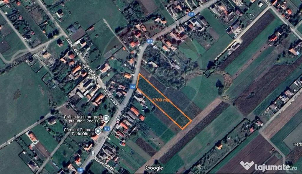 Terenul propus spre vânzare are o suprafață generoasă, însumând 5.700 mp, și beneficiază de un front stradal total de 32 de metri liniari, ceea ce oferă posibilități multiple de configurare a acceselor sau de împărțire a parcelelor. Proprietatea este alcătuită din două loturi distincte: primul lot, cu o suprafață de 4.028 mp, dispune de un front de 23 ml, în timp ce al doilea lot, cu o suprafață de 1.672 mp, are un front de 9 ml. Împreună, acestea formează o platformă compactă și ușor de valorificat, potrivită pentru proiecte rezidențiale de mici dimensiuni.