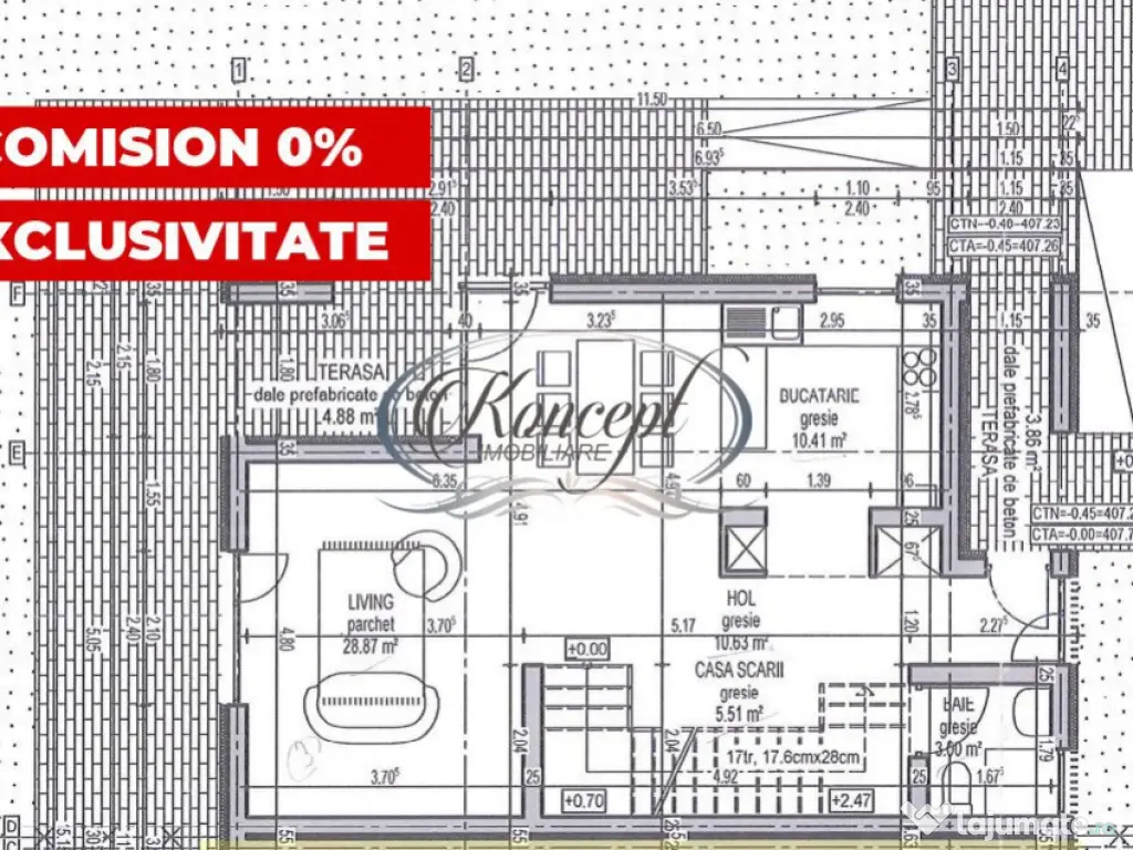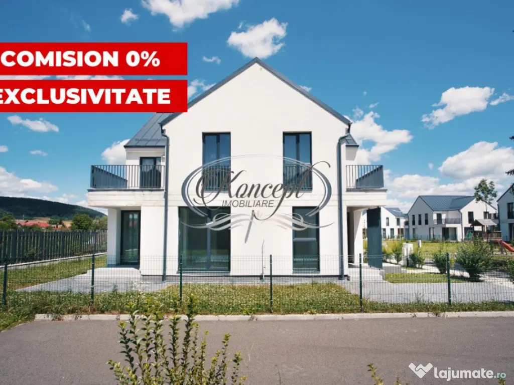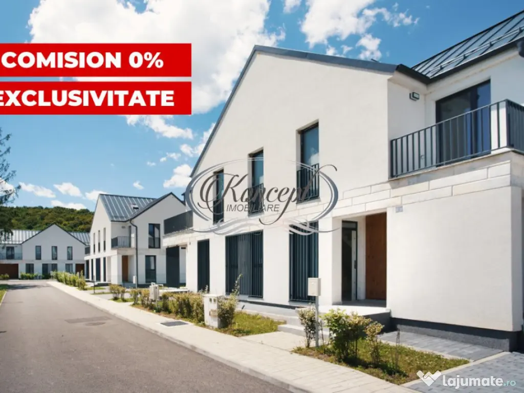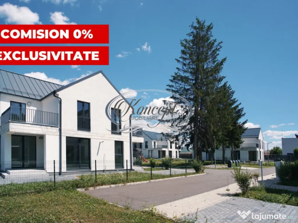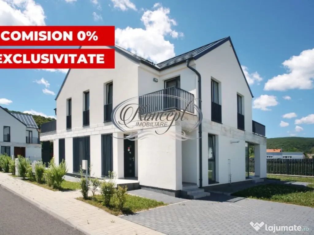 Koncept Imobiliare va ofera spre vanzare in exclusivitate, cu comision 0%, ultimele unitati disponibile din ansamblul rezidential privat Gloris Village, situat intr-o zona pitoreasca, retrasa si linistita a localitatii Gilau. Aflat la doar 350 de metri de Barajul si Lacul Gilau, acest complex ofera un camin perfect pentru familii, unde siguranta si intimitatea sunt prioritati absolute. Duplexurile au suprafete utile de 118.83 mp si 114.19 mp, cu terase cu o suprafata utila cumulata de 18.24 mp si teren aferent cuprins intre 430 mp si 250 mp. Regimul de inaltime este P+1 si compartimentarea este gandita pentru a maximiza confortul si functionalitatea; -parter: hol, living open space, bucatarie cu loc de luat masa, baie, 2 terase si casa scarii; -etaj: hol, 3 dormitoare, baie si 2 terase. Duplexurile sunt predate la stadiul de semifinisat, pregatite pentru a fi personalizate dupa gusturile fiecarui proprietar. Interiorul include pereti gletuiti, sapa autonivelanta, geamuri cu 3 foi de sticla, toate instalatiile trase pe pozitii, centrala termica proprie in condensatie si incalzire prin pardoseala. Complexul dispune de un parc privat de 2.350 mp, destinat exclusiv locatarilor, dotat cu locuri de joaca, banci si vegetatie matura care ofera umbra naturala. Aceste facilitati contribuie la un stil de viata modern si confortabil, oferind un spatiu perfect pentru relaxare si socializare. Fiecare unitate beneficiaza de 1-2 locuri de parcare proprii. Intregul complex este imprejmuit si echipat cu bariere de acces, porti si un sistem performant de supraveghere video, asigurand un control strict al accesului si monitorizare continua. Se recomanda acest ansamblu pentru familiile care doresc siguranta, confort si un mediu prietenos. Pretul include TVA. Pentru informatii suplimentare, programarea unei vizionari sau pentru a afla oferta noastra completa, nu ezitati sa ne contactati telefonic, prin e-mail sau la sediul agentiei noastre de pe str. Aviator Badescu nr. 19, Cluj-Napoca. Id intern: P19467 Număr niveluri imobil: 1 Număr Băi: 2 Comision cumpărător: 0% Nr. locuri parcare: 2 Curent Apă Canalizare Gaz