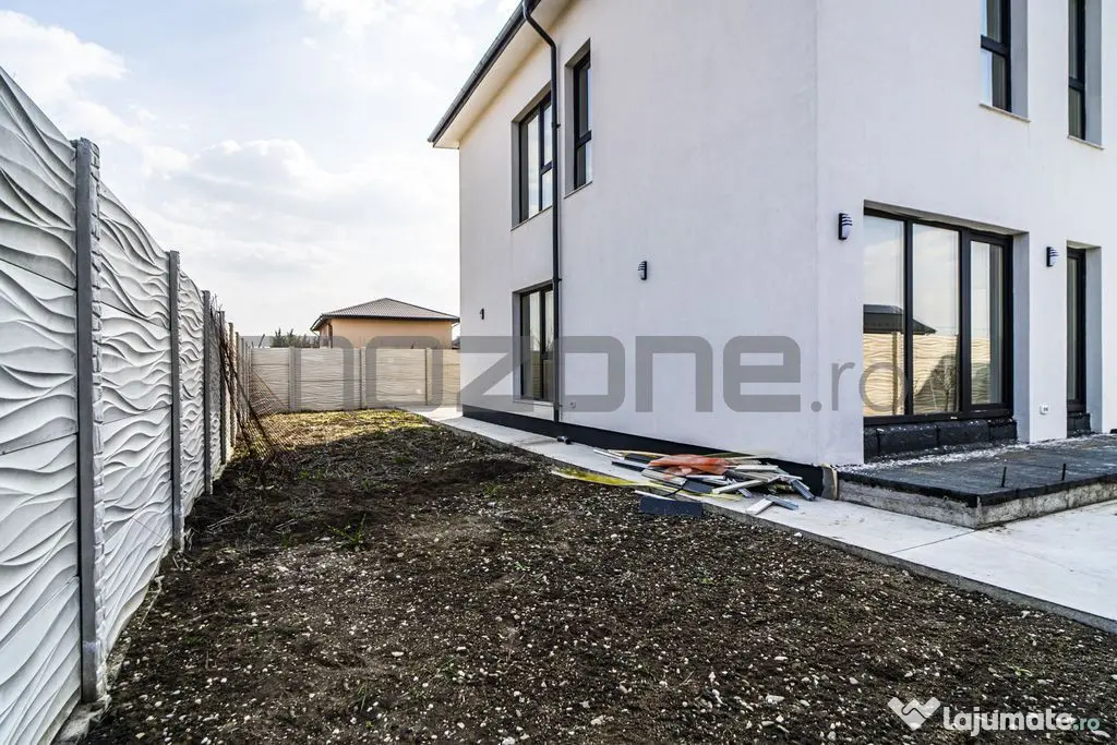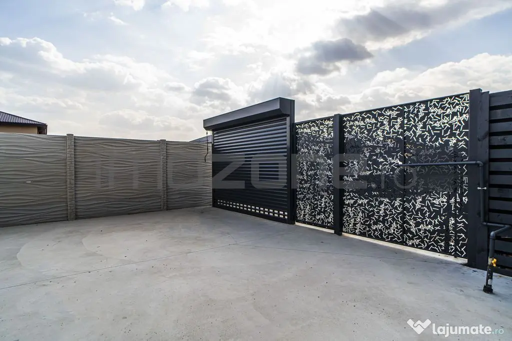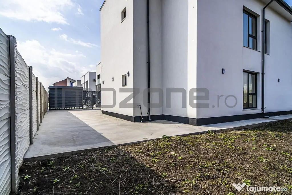 Casa se află pe un teren de 370mp, beneficiind de o curte privată amenajată, ideală pentru relaxare sau activități în aer liber. În fața proprietății sunt disponibile 3 locuri de parcare.
