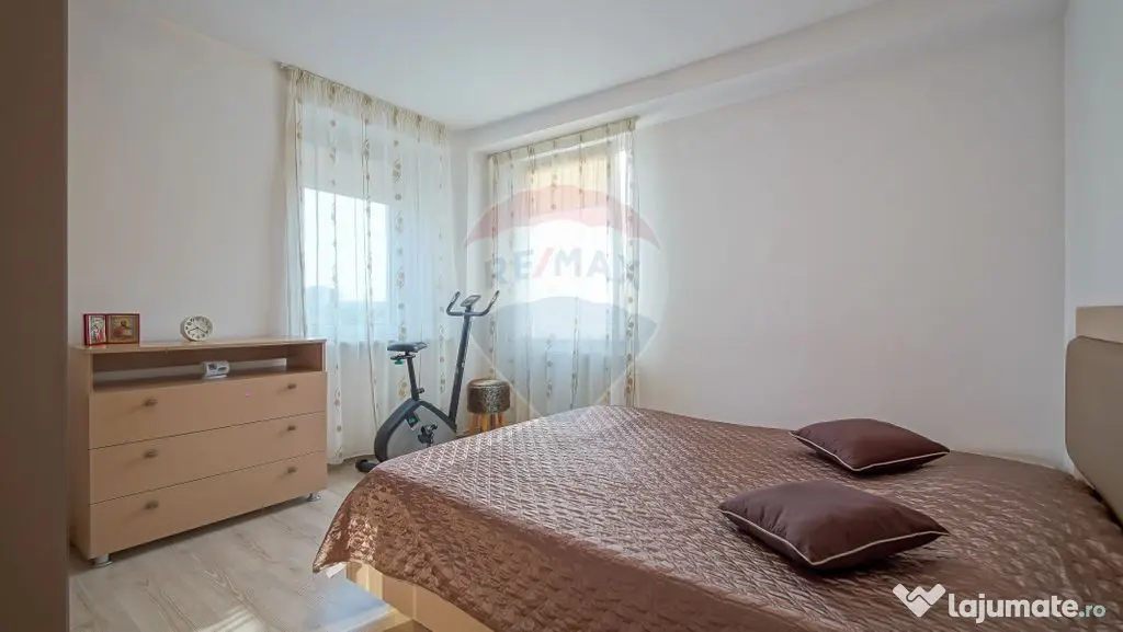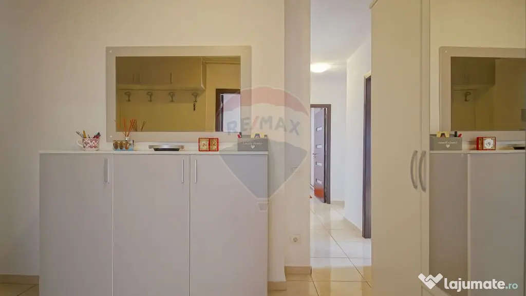 Structura este una complet decomandată, cu camere mari și luminoase (doua dormitoare si un living), două băi, o bucătărie generoasă, un hol spațios și o cămară extrem de necesara în orice locuință, toate acestea insumand o suprafata utila de 80 mp. Apartamentul se vinde complet mobilat și utilat modern, exact așa cum se vede în fotografii.