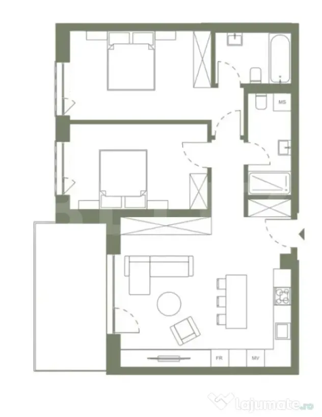 Apartamentul prezentat are o suprafata utila de 72,7 mp plus o logie de 12,4 mp.