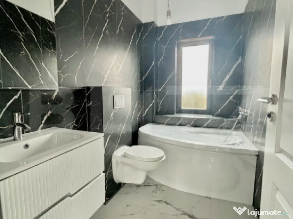 Beneficiază de încălzire în pardoseală, centrală proprie, acoperiș tip terasă, terasă exterioară și parcare pentru 3 mașini.