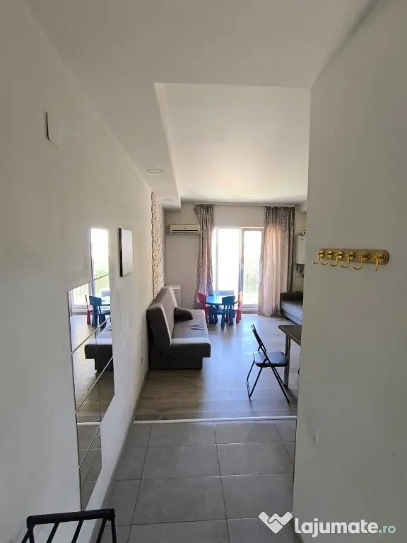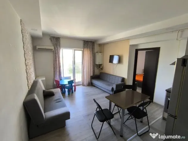 Eurocity Estate va propune spre inchiriere un apartament de 2 camere (tip studio), in Complexul Rezidential Cosmopolis, Stefanesti–Tunari semidecomandat, situat la etajul 2/10, suprafata 42mp, mobilat si utilat complet, parchet, gresie, faianta, centrala termica, incalzire in pardoseala, frigider, plita, hota, masina spalat, televizor LCD, usi interioare din lemn, usa metalica la intrare, ferestre cu geam termopan, constructie 2009, statia de masina in fata blocului.