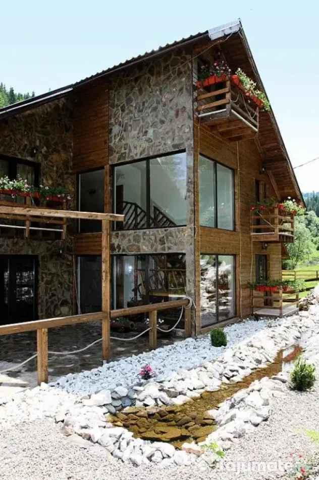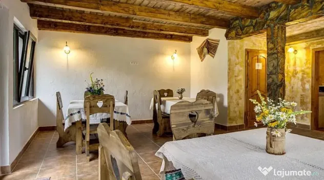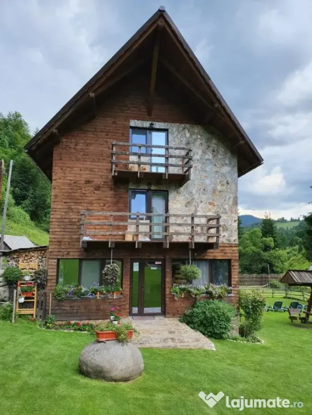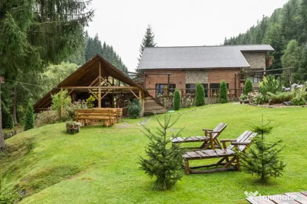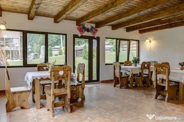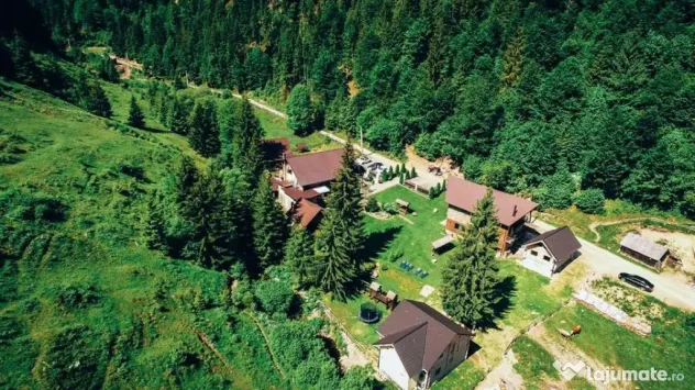 Vand complex turistic compus din 3 cladiri in Arieseni, construita si mobilata in stil rustic, capacitate cazare 43 locuri in 17 camere, fiecare camera dotata cu baie proprie, televizor, locuri comune cu living si locuri de luat masa, loc de depozitat schiuri, parcare proprie, suprafata teren 5000 mp.