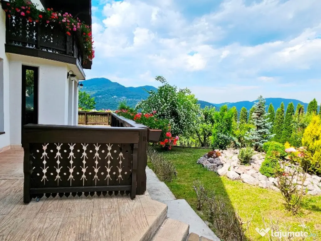 OPORTUNITATE DE INVESTIȚIE! AFACERE LA CHEIE – COMPLEX TURISTIC CU SPAȚIU CAZARE ȘI DE AGREMENT, ANEXE, TEREN ȘI LIVADĂ 11.000 MP, 800.000 EURO Iubitorilor de natură și de agrement, interesați să achiziționeze o proprietate aflată în circuitul turistic, echipată complet, care generează venituri imediate, FORTUNA IMOBILIARE propune acest ansamblu imobiliar situat într-o zonă mirifică, la poale de munte, cu un view senzațional, din com. Alexandru cel Bun, jud. Neamț. Proprietatea, ce îmbracă o aură rustică aparte în peisajul turistic al Ținutului Neamțului și al Regiunii Moldova, este compusă din suprafața de 11.000 mp teren, pe care o echipă de constructori și meșteșugari ai locului au făurit cel mai frumos și apreciat obiectiv turistic din zonă. Complexul turistic cu funcțiuni de cazare și de agrement este înscris în circuitul Pensiunilor Agroturistice din România, are licență și autorizații de funcționare la zi, fiind format din: • Unitate cazare / Vilă P+E+M cu suprafața desfășurată de 550 mp; • Construcție cu suprafața de 100 mp (bucătărie, sală de mese și terasă); • Spațiu pentru locuit / administrat afacerea; • Foișor cu grătar; • Terasă mare cu cazan din inox pentru o țuică naturală; • Zonă SPA (Saună și ciubăr); • Zonă de agrement și de petrecere a timpului liber; • Loc de joacă pentru copii cu tobogane, panouri de cățărare și scrâncioburi; • Pivniță; • 3 anexe; • Platou betonat cu locuri de parcare. *Spațiul pentru cazare turiști este construit în anul 2015, pe fundații solide din beton armat, zidărie din cărămidă, termosistem exterior integral, acoperit cu țiglă Bramac, prevăzut cu tâmplărie exterioară și interioară din frasin stratificat cu sticlă termopan, parchet stratificat. Are în componență un living foarte spațios (cu ieșire în terasă mare acoperită), prevăzut cu șemineu, bucătărie open space, baie de serviciu, 5 dormitoare mari, fiecare cu baie proprie și ieșire în balcon mare tip terasă (de unde puteți respira aerul de munte și admira priveliștea unică) și un apartament cu 2 camere (ce oferă intimitate membrilor familiei/grupului). Totul este echipat complet cu tot necesarul unei bune funcționări eficiente, inclusiv cu instalații de aer condiționat. **Conex spațiului pentru cazare, proprietatea pune la dispoziție un edificiu cu suprafața de 100 mp, prevăzut cu bucătărie utilată complet, loc de luat masa și o terasă mare cu o priveliște de vis, ce iți taie respirația. Este dotată și echipată complet cu tot necesarul (inclusiv sistem de sonorizare) unei bune funcționări pentru petreceri de grup, organizare evenimente private și speciale. ***Clădirea pentru locuit, sau pentru administrat afacerea, este construită pe fundații din beton, zidărie din cărămidă, cu termosistem exterior, acoperită cu tigla Bramac, compusă din cameră mare cu bucătărie open space și baie, ce oferă condiții de locuit pe toată durata anului. ****Proprietatea beneficiază de două surse de apă (de la rețeaua publica si una proprie), încălzire cu centrală Arca performantă pe lemn / peleți, puffer de 2000 l, boiler de 500 l, generator curent de 12 kW, stație osmoză industrială pentru tratarea apei, astfel încât turiștii să beneficieze de condiții confortabile în orice anotimp al anului. Terenul este împrejmuit cu gard, este foarte frumos amenajat cu alei, flori, arbuști ornamentali, decorațiuni de gradină, livadă pe rod ( nuci, meri, peri, cireși, pruni ), zonă de barbeque, zonă de relaxare etc. Proprietatea are un potențial de business ridicat, fiind un punct de atracție pentru turiști, locuitorii din Piatra Neamț, localități limitrofe, cât și din țară și străinătate. Preț 800.000 EURO Pentru o prezentare detaliată a acestei oferte, furnizarea unor informații suplimentare referitoare la situația juridică / identificarea imobilului și programarea unei vizionări, vă invităm la sediul nostru, Fortuna Imobiliare, situat pe str. M. Eminescu, nr. 35, ap. 13, parter, lângă fostul Tribunal, tel. contact 0755.270.041. Your comfort is our priority ! Oferta noastră completă o găsiți aici: https://imobiliarefortuna.ro/ An finalizare construcție: 2015 Stadiu construcţie: Finalizat