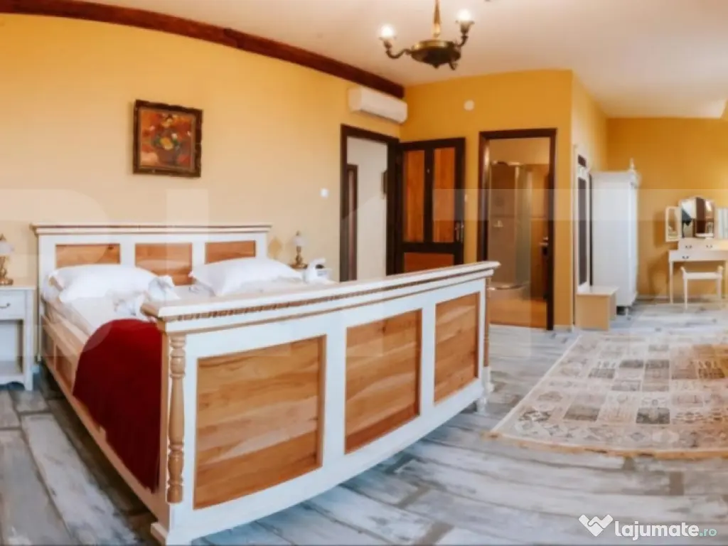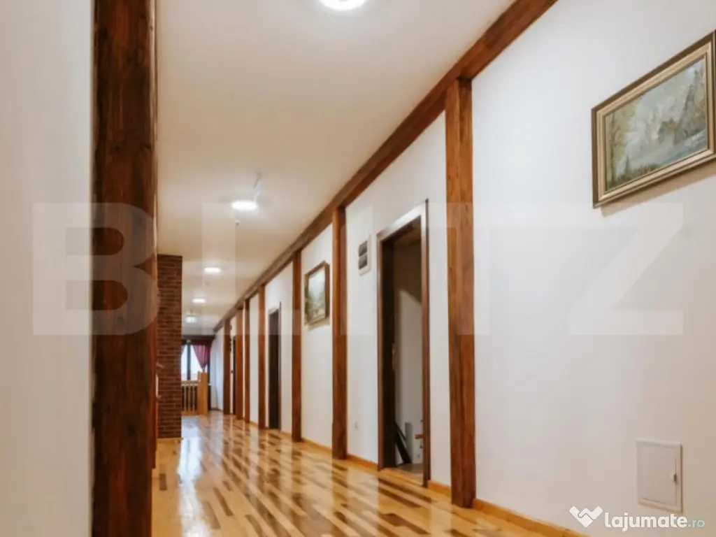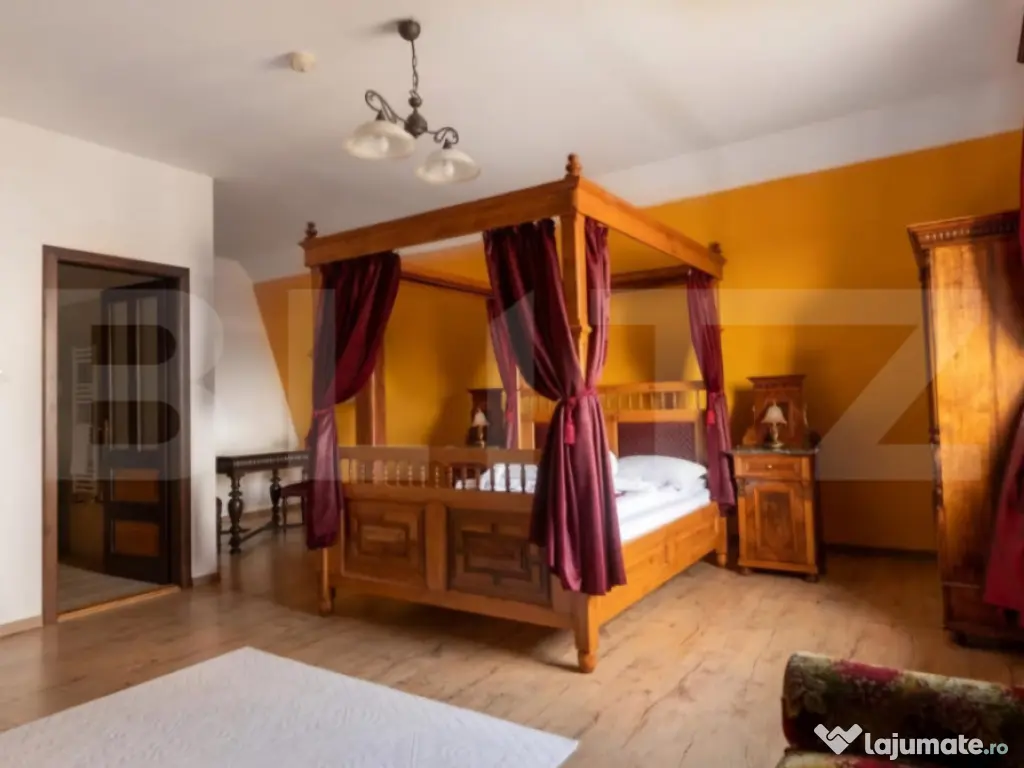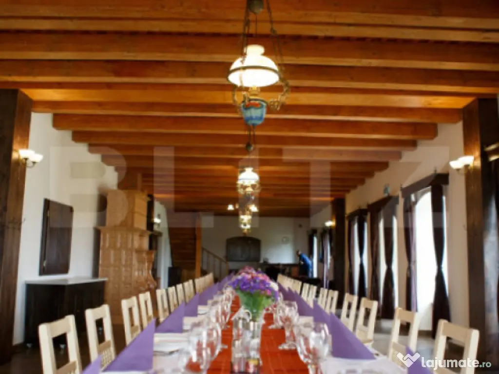 O oportunitate rară: conac deosebit de vânzare în proximitatea orașului Brasov si Sf.Gheorghe, ideal pentru reședință privată, pensiune boutique sau centru de evenimente. Detalii proprietate: - Renovare finalizata in 2018 - 7 camere, fiecare cu baie proprie și acces individual din holul principal de la etaj. - Salon generos de 144 mp la parter, perfect pentru evenimente, activități recreative sau zonă de zi spațioasă. - Cramă de 70 mp la subsol, atmosferă autentică pentru relaxare sau degustări de vin. - Teren de 3.000 mp, amenajat cu locuri de parcare. - Anexă de 36 mp în curte, dotată cu ciubăr și saună uscată. Infrastructură și eficiență energetică: Generator diesel cu o capacitate de 26 KW pentru siguranță energetică în caz de pană de curent. 19 panouri solare cu producție de până la 10 KW, contribuind la reducerea semnificativă a consumului din rețeaua electrică, (consum anual aproape de pragul de break-even). Avantaje esențiale: Nu este clasificat ca monument istoric, astfel permite modernizări sau schimbări funcționale fără restricții. Posibilitate de extindere: teren intravilan adiacent de 20.000 mp, disponibil opțional, ideal pentru dezvoltări turistice, imobiliare sau recreative Această proprietate este o alegere excelentă pentru cei care caută un spațiu versatil, cu farmec aparte, în mijlocul naturii, dar cu acces rapid către oraș. Comision 0% pentru cumpărător. Pentru vizionare sau detalii suplimentare, vă rugăm să ne contactați. Cod ofertă / ID BLITZ: P147008 Id intern: P147008 Număr niveluri imobil: 1 Număr Băi: 9 Curent Apă Canalizare Climă