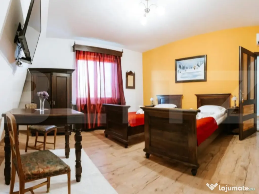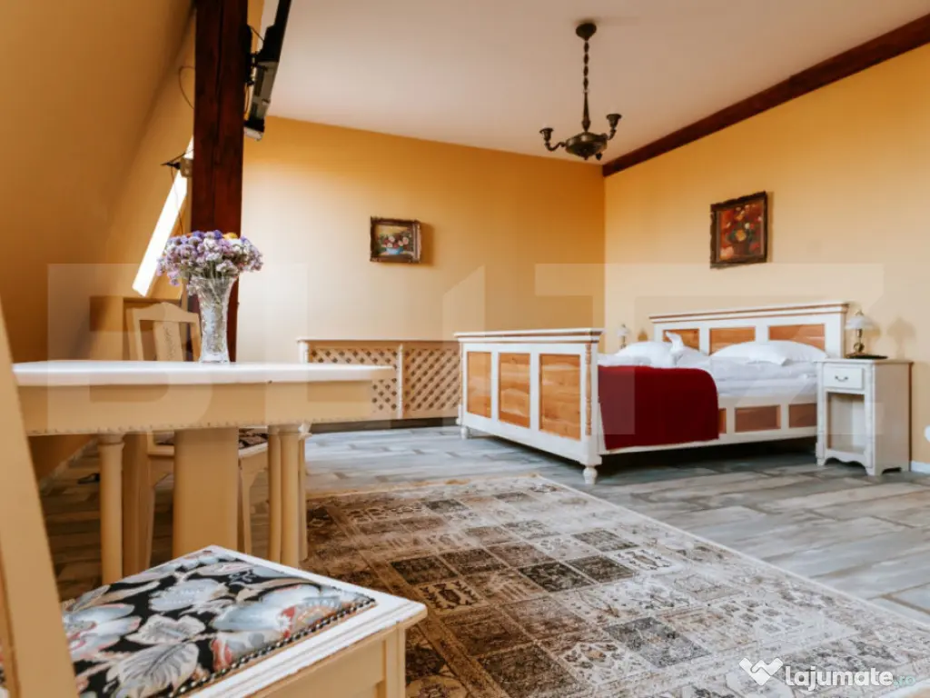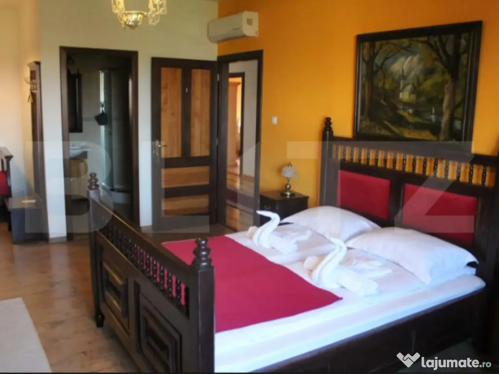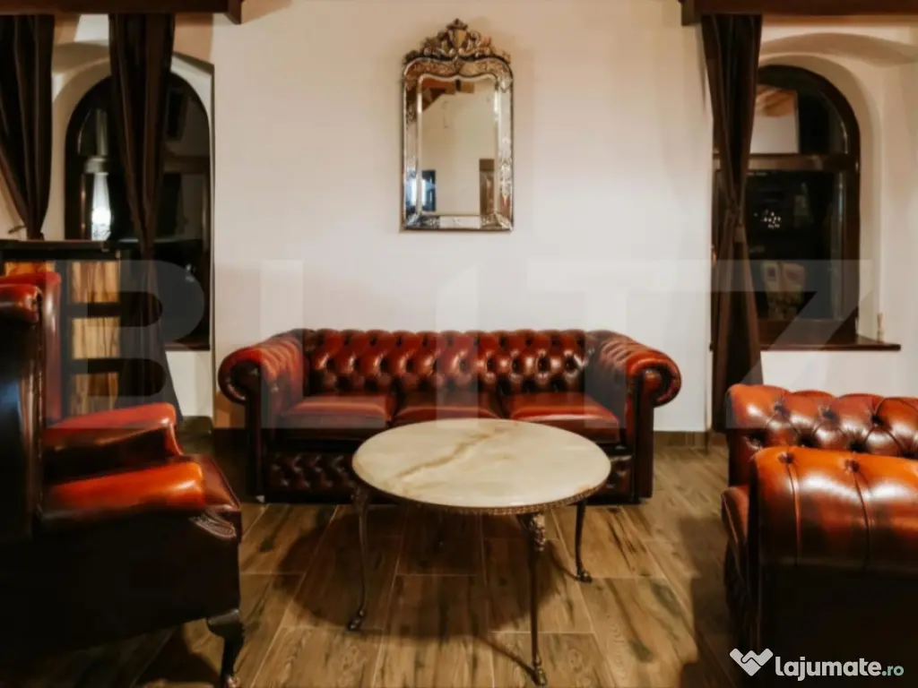 O oportunitate rară: conac deosebit de vânzare în proximitatea orașului Brasov si Sf.Gheorghe, ideal pentru reședință privată, pensiune boutique sau centru de evenimente. Detalii proprietate: - Renovare finalizata in 2018 - 7 camere, fiecare cu baie proprie și acces individual din holul principal de la etaj. - Salon generos de 144 mp la parter, perfect pentru evenimente, activități recreative sau zonă de zi spațioasă. - Cramă de 70 mp la subsol, atmosferă autentică pentru relaxare sau degustări de vin. - Teren de 3.000 mp, amenajat cu locuri de parcare. - Anexă de 36 mp în curte, dotată cu ciubăr și saună uscată. Infrastructură și eficiență energetică: Generator diesel cu o capacitate de 26 KW pentru siguranță energetică în caz de pană de curent. 19 panouri solare cu producție de până la 10 KW, contribuind la reducerea semnificativă a consumului din rețeaua electrică, (consum anual aproape de pragul de break-even). Avantaje esențiale: Nu este clasificat ca monument istoric, astfel permite modernizări sau schimbări funcționale fără restricții. Posibilitate de extindere: teren intravilan adiacent de 20.000 mp, disponibil opțional, ideal pentru dezvoltări turistice, imobiliare sau recreative Această proprietate este o alegere excelentă pentru cei care caută un spațiu versatil, cu farmec aparte, în mijlocul naturii, dar cu acces rapid către oraș. Comision 0% pentru cumpărător. Pentru vizionare sau detalii suplimentare, vă rugăm să ne contactați. Cod ofertă / ID BLITZ: P147008 Id intern: P147008 Număr niveluri imobil: 1 Număr Băi: 9 Curent Apă Canalizare Climă