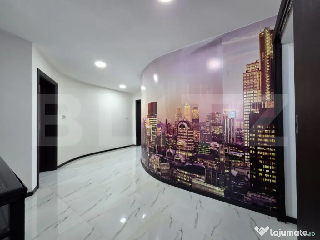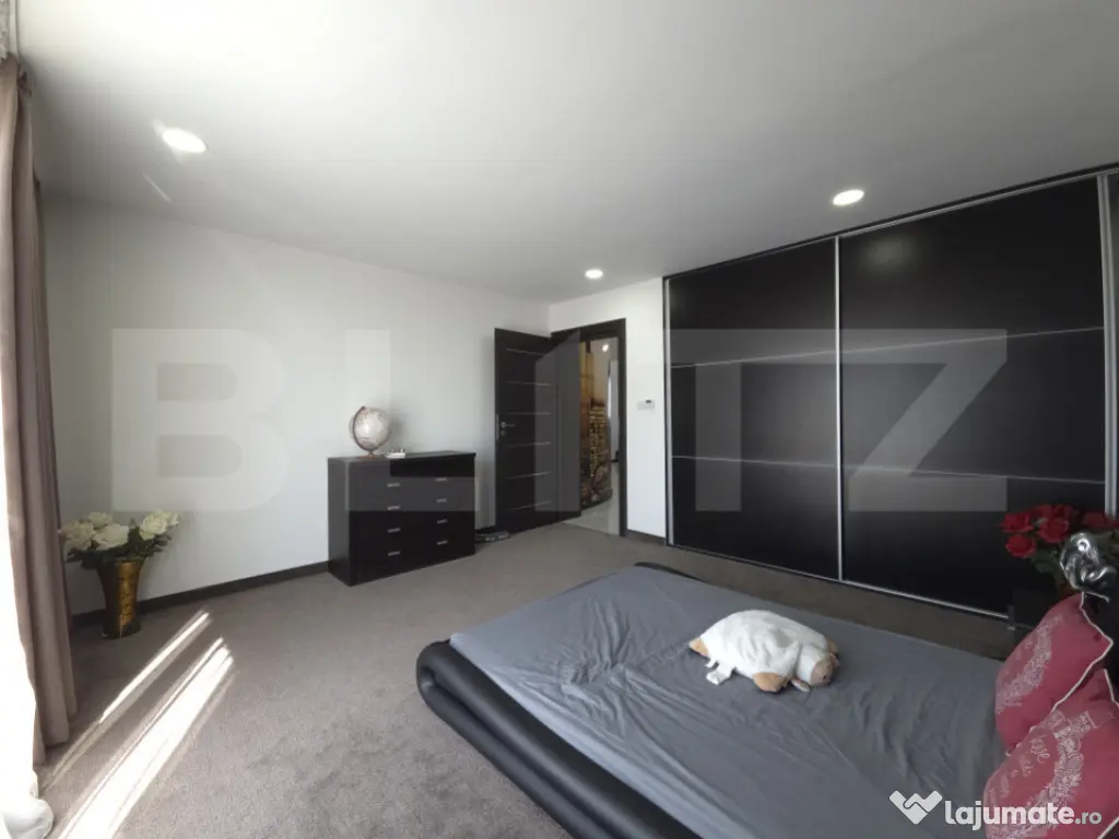 Vă propunem spre închiriere o reședință cu totul specială, situată în zona liniștită a localității Matraca-Ulmi. Această proprietate nu este doar o casă, ci un stil de viață sustenabil, definit prin spații generoase, o arhitectură modernă cu vitraje largi și o independență energetică rară pe piața imobiliară actuală. Deși structura emană soliditate, dotările interioare și tehnologia implementată o plasează în topul preferințelor pentru anul 2026. COMPARTIMENTARE ȘI DESIGN INTERIOR Vila dispune de o suprafață desfășurată de 296 mp, fiind gândită pentru a oferi intimitate și funcționalitate fiecărui membru al familiei: Zona de Zi (Parter): Un living monumental, inundat de lumină naturală, dotat cu un șemineu pe lemne care devine piesa centrală a serilor de iarnă. Pentru pasionații de gastronomie, bucătăria este complet închisă și utilată, comunicând elegant cu o zonă de dining dedicată, creată special pentru cinele în familie. Zona de Odihnă (Etaj 1): Trei dormitoare spațioase, fiecare cu acces la balcoane private, oferind vederi relaxante asupra curții. Băile sunt finisate premium, oferind o experiență de tip spa chiar la dumneavoastră acasă. Zona de Hobby & Business (Etaj 2): Un nivel suplimentar ce găzduiește două camere versatile și o zonă de bar privată, ideală pentru momente de recreere, cinema room sau un birou retras pentru munca de acasă. DOTĂRI TEHNICE ȘI BENEFICII EXCLUSIVE Ceea ce face această proprietate cu adevărat unică este eficiența sa operațională: Independență Energetică: Datorită sistemului avansat de panouri fotovoltaice, costurile cu energia electrică sunt reduse la minim, oferindu-vă libertatea de a utiliza sistemele de climatizare fără grija facturilor. Confort Termic: Sistemul de încălzire în pardoseală asigură o căldură uniformă și un mediu sănătos, fiind ideal pentru familiile cu copii. Siguranță Maximă: Proprietatea este securizată prin sistem de alarmă și acces controlat prin porți electrice automatizate. Oază Exterioară: Terenul imens de 1.276 mp oferă spațiu nelimitat pentru joacă și relaxare, incluzând o zonă de grătar complet amenajată pentru weekenduri memorabile. LOCAȚIE ȘI ACCESIBILITATE Situată într-o zonă rezidențială de elită, vila vă oferă liniștea și aerul curat de care aveți nevoie, păstrând în același timp un acces rapid (5-7 minute) către centrul municipiului Târgoviște, școli, grădinițe și centre comerciale. CONDIȚII DE ÎNCHIRIERE Proprietatea se închiriază complet mobilată și utilată, fiind gata să primească o familie care apreciază detaliile, arhitectura modernă și avantajele unei case "verzi". Cod ofertă / ID BLITZ: P166338 Id intern: P166338 Număr niveluri imobil: 2 Număr Băi: 2 Nr. locuri parcare: 2 Curent Apă Canalizare Gaz Climă