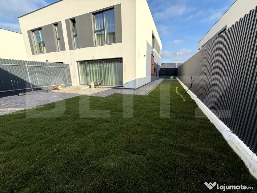 Mută-te fără bătăi de cap, într-o casă ultrafinisată, într-un ansamblu privat liniștit din Chinteni – la doar 10 minute de Cluj-Napoca. O alegere perfectă pentru cei care vor proximitatea orașului, dar își doresc intimitate, confort și aer curat. Detalii proprietate: Suprafață utilă: 120 mp Tip: duplex, ansamblu privat Stadiu: ultrafinisat Compartimentare inteligentă: Parter: living spațios cu bucătărie tip open-space baie Etaj: 3 dormitoare 2 băi (din care un dormitor matrimonial cu baie proprie) balcon privat Beneficii cheie: Finisaje de calitate superioară Garaj Curte amenajata ansamblu privat: liniște, siguranță și comunitate restrânsă construcție durabilă, eficiență energetică ridicată încălzire în pardoseală – confort termic uniform spații luminoase, cu lumină naturală excelentă acces rapid către Cluj-Napoca (~10 minute) Dacă îți dorești o locuință modernă, funcțională și estetică, unde totul este pregătit pentru mutare, această proprietate oferă combinația ideală între confort, intimitate și acces rapid către oraș. Contactează-ne pentru detalii suplimentare sau pentru programarea unei vizionări! Cod ofertă / ID BLITZ: P161409 Id intern: P161409 Număr niveluri imobil: 1 Număr Băi: 3 Nr. locuri parcare: 2 Curent Apă Canalizare Gaz