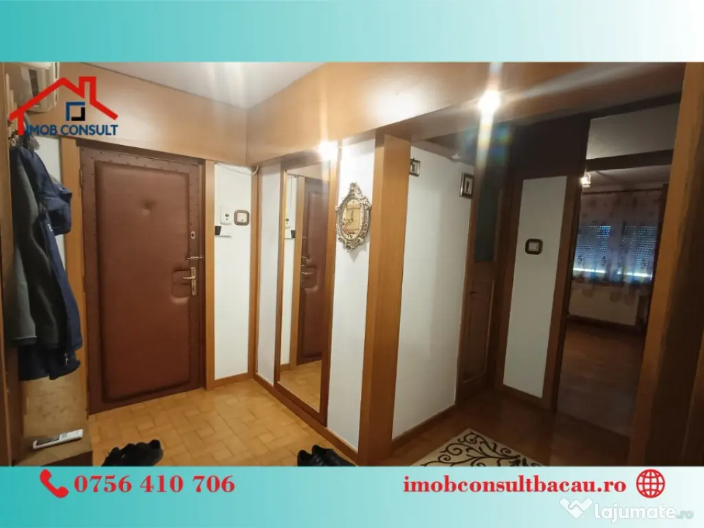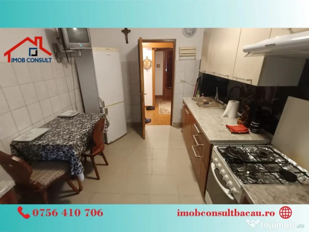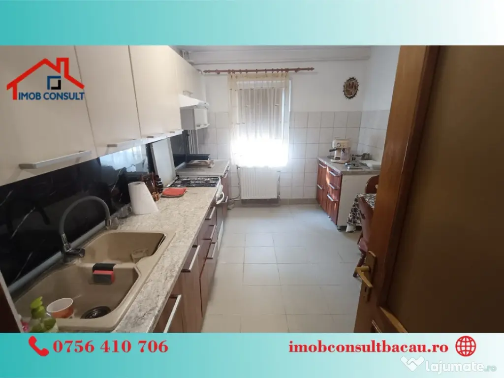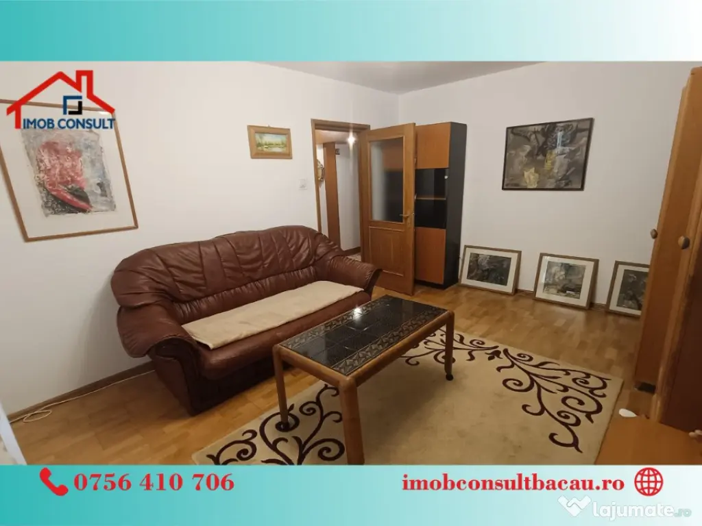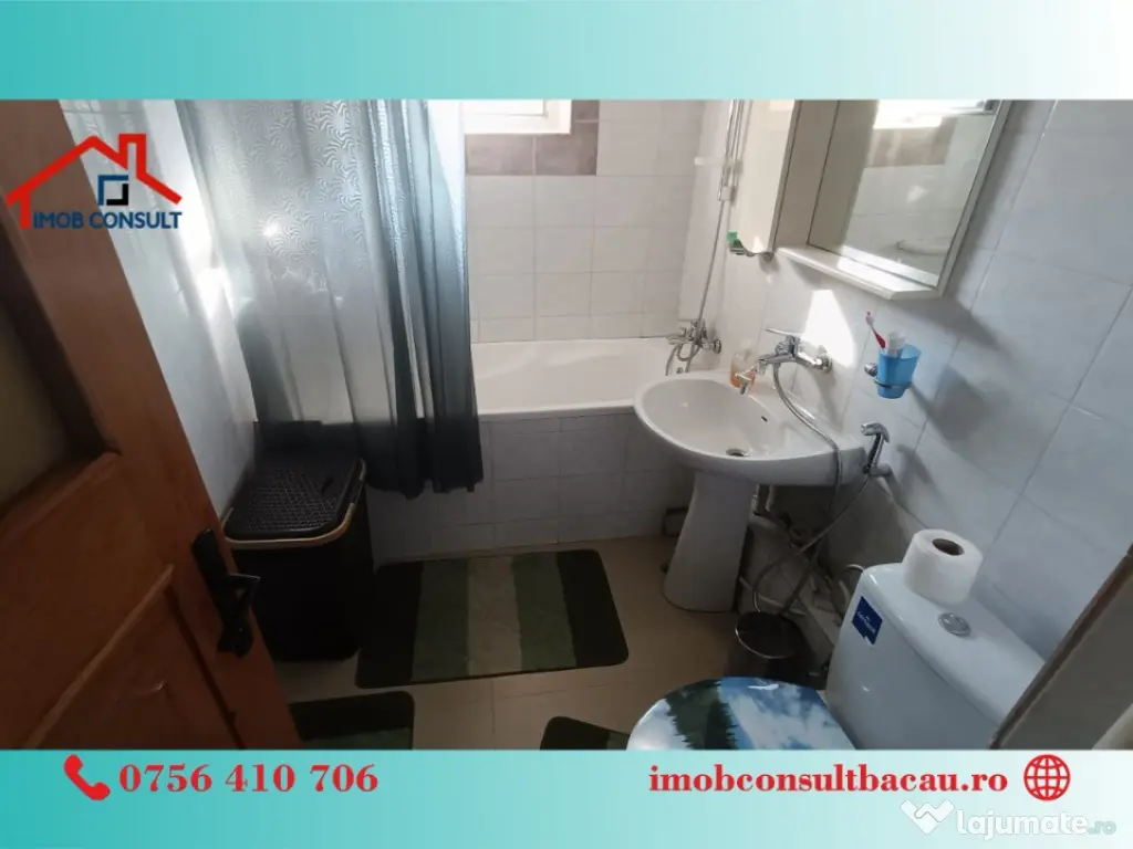 Imob Consult Bacau iti prezinta spre inchiriere un apartament spatios, cu 3 camere situat la etajul 1 al unui bloc de apartamente de pe strada Banca Nationala, la doua minute de centrul orasului. La intrarea in apartament te intampina un hol spatios unde se gaseste si instalatia de aer conditionat. Din hol se face accesul in restul apartamentului alcatuit din doua dormitoare primitoare, doua bai, o bucatarie complet mobilata si utilata si o camera de zi cu suprafata generoasa din care se face accesul pe balconul inchis. Suprafata utila a imobilului este de 70 mp si vine la pachet cu propriul loc de parcare!! Ca si facilitati amintim: - Centrala termica proprie; - Instalatie de aer conditionat; - Loc propriu de parcare; - Balcon inchis; - Suprafata utila 70 mp; Programează o vizionare și locuiește aici! - Bogdan: 0756 410 706; - Corina: 0740 288 297, sau la sediul agenției noastre, Imob Consult Bacau, situat pe strada Banca Națională nr. 27 la intersecția cu Str. Neagoe Vodă, langa Irish Pub. Confort: 1 Tip imobil: Bloc de apartamente Număr Băi: 2