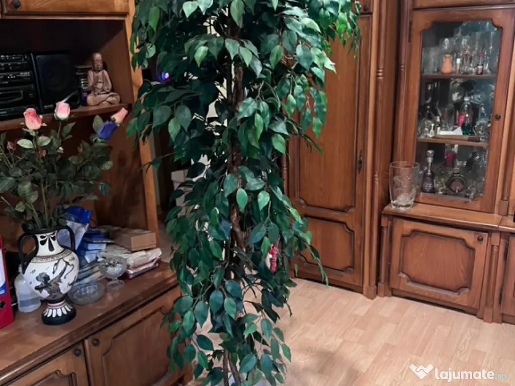 Acest copac artificial verde cu frunze stufoase aduce un aer proaspăt și natural în orice încăpere. Este un accesoriu decorativ ideal pentru a crea o atmosferă relaxantă și primitoare în casă sau birou.