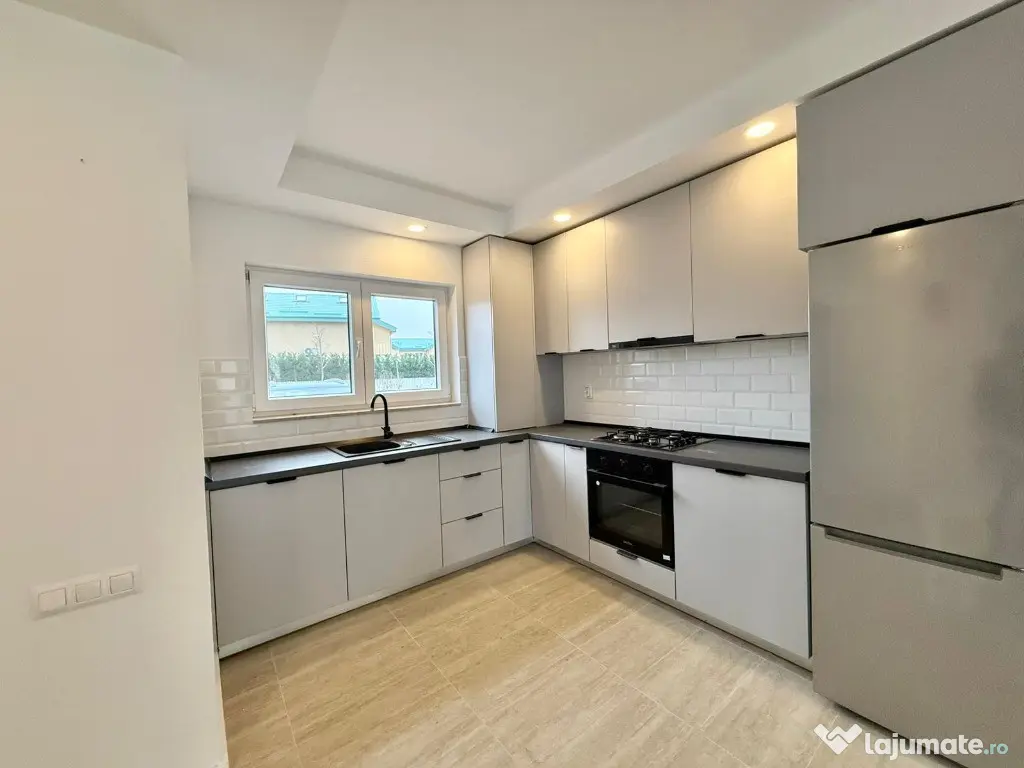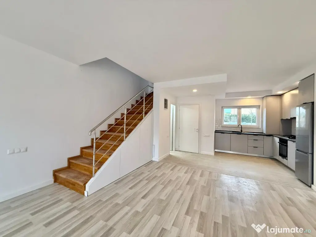 Are o suprafata utila de 86 mp, gradina de 20 mp si 2 locuri de parcare incluse in pret. Se vinde cu bucataria mobilata si utilata, cateva corpuri de mobilier, exact asa cum putem vedea in fotografii.