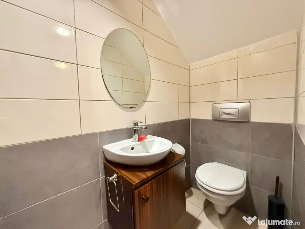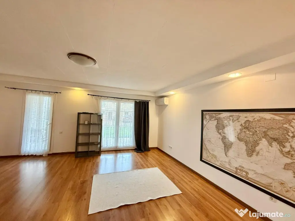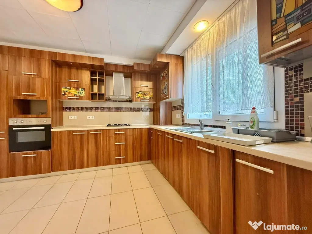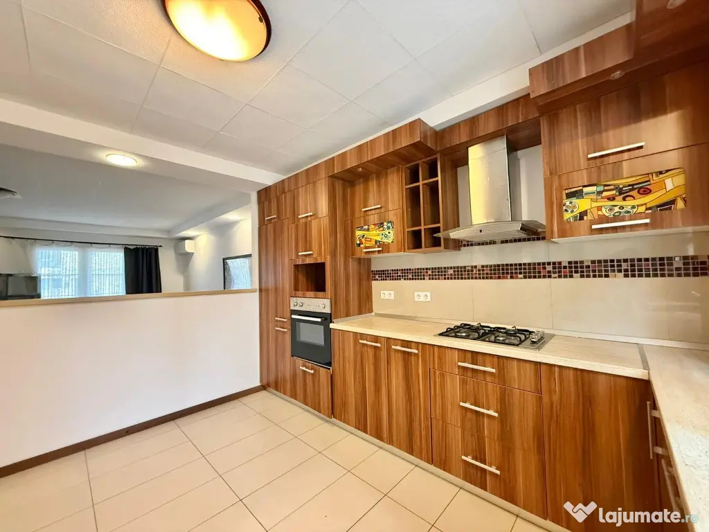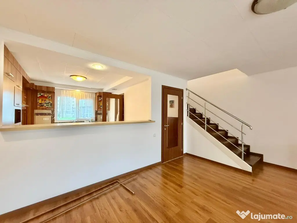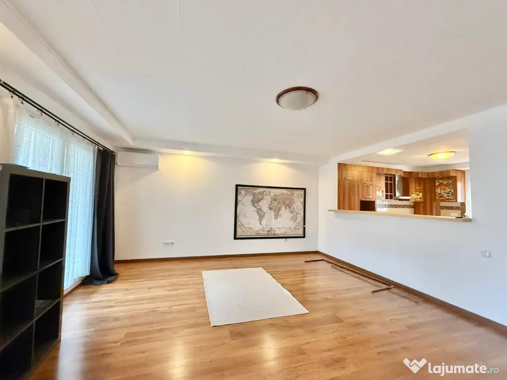 Are o suprafata utila de 87 mp, balcon de 4 mp, gradina de 136 mp si 2 locuri de parcare incluse in pret. Se vinde cu bucataria mobilata si utilata, cateva corpuri de mobilier, exact asa cum putem vedea in fotografii.