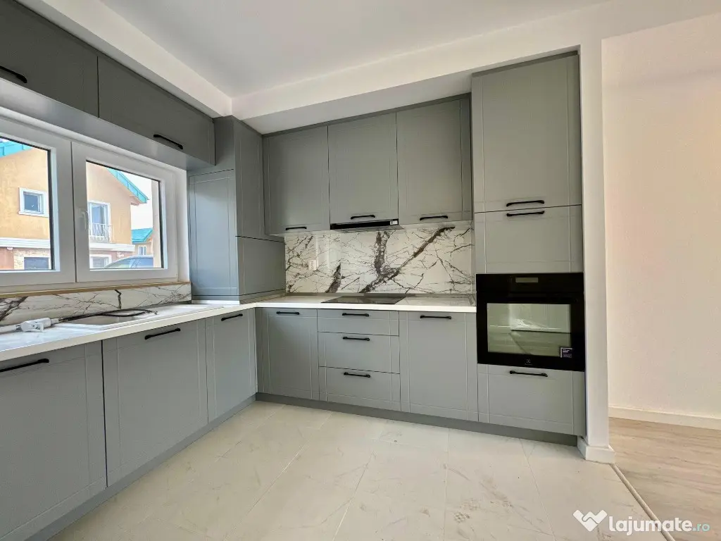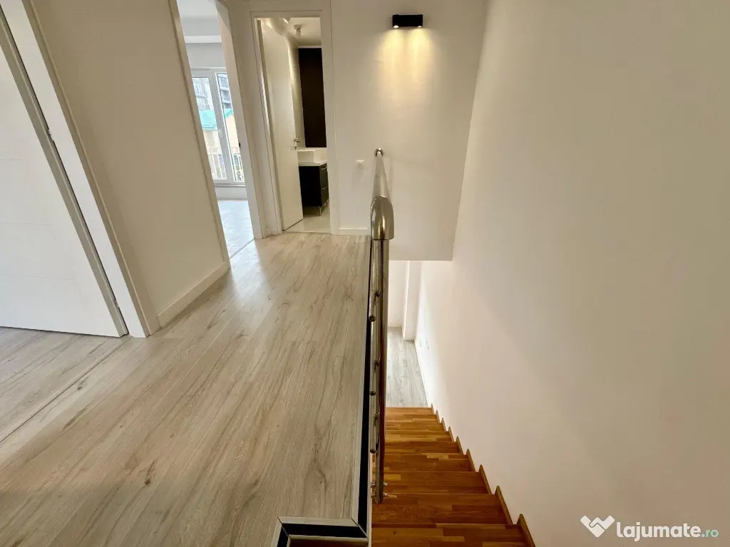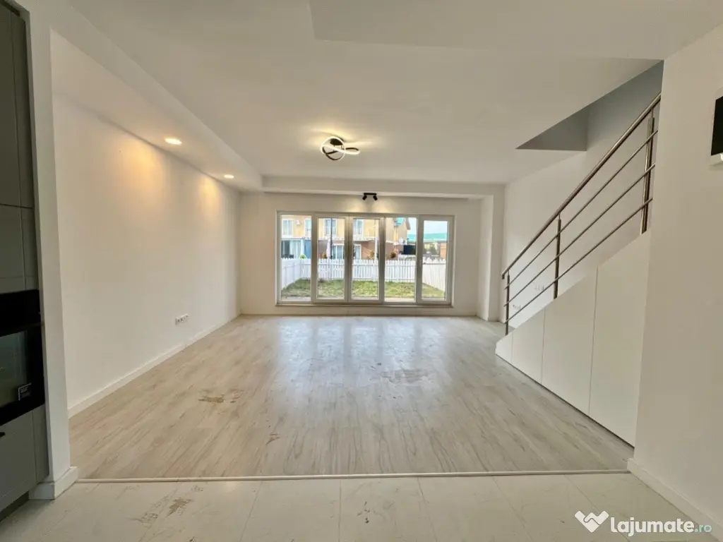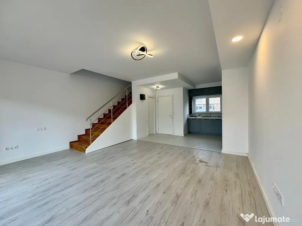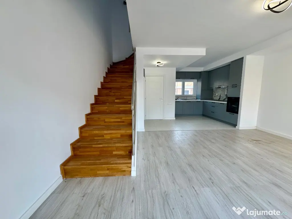 Are o suprafata utila de 71 mp, gradina de 33 mp si 2 locuri de parcare incluse in pret. Se vinde cu bucataria mobilata si corpurile de iluminat deja montate. Are spatii de depozitare sub scara si dressing mobilat la etaj, exact asa cum putem vedea in fotografii.