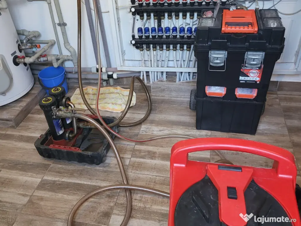 Se face pentru tot sistemul legat: centrala termică + calorifere + încălzire în pardoseală PPR/PEX.