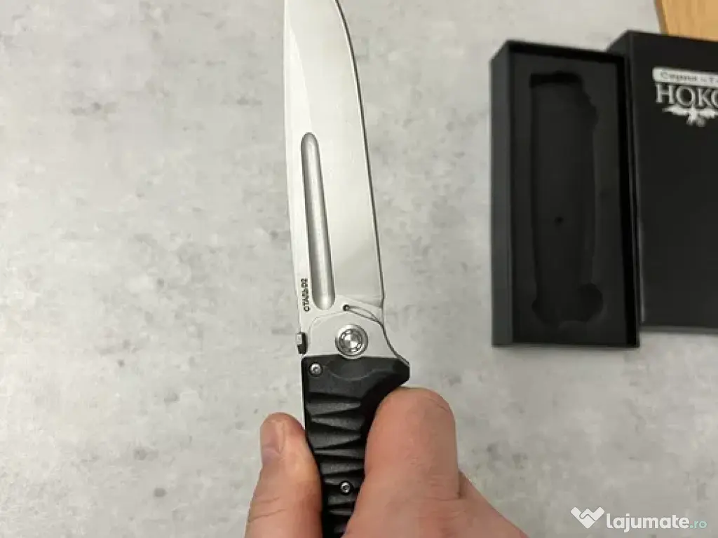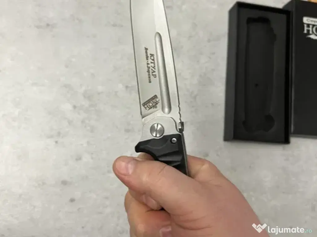Briceag rusesc pliabil mare, lamă 12.5 cm, lungime totală 26 cm, grosime lamă 3 mm, 200 g disponibil în 2 modele cel negru este la 130 lei cel verde 120 lei foarte ascutite de o calitate excelenta fabricate in RUSIA