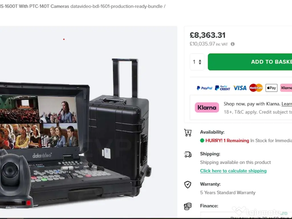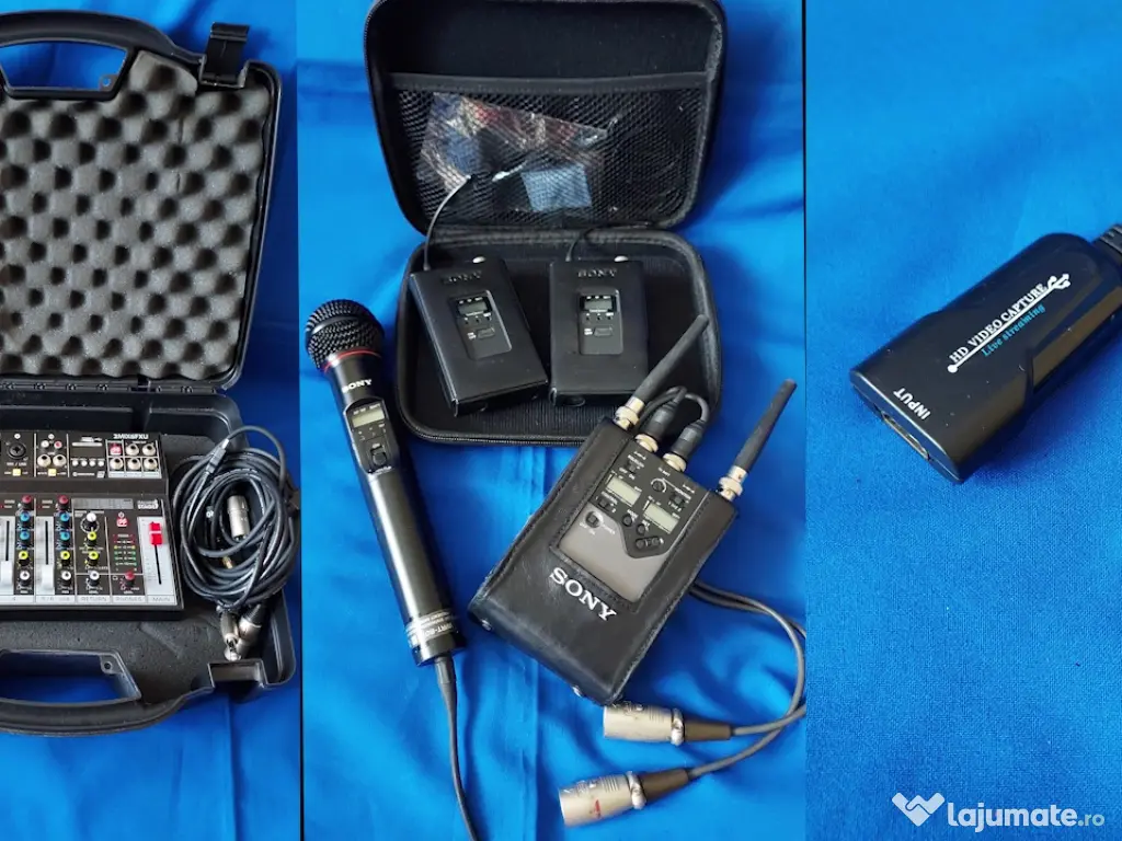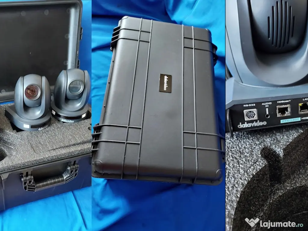 Kitul Datavideo pentru streaming live oferă o soluție completă pentru transmiterea video de calitate. Îmbunătățește-ți experiența de streaming cu acest echipament profesional. Compus din - mixer video datavideo 1600t full hd cu comanda a trei camere robotice și reglaj pe fiecare cameră și o cameră fixă, trei camere robotice datavideo full hd,geantă transport dedicată,semnalul video cât și alimentarea camerelor individual se transmite prin cablu FTP Cat6 până la 100 metri fiecare la calitate full hd, trei lentile polarizatoare,trei trepiede de 190 cm. înălțime max cu trei genți de transport, placă de captură full HD de la HDMI in la USB 3.0 out, mixer audio separat cu phantom 48v și intrări XLR plus bluetooth, lavaliere duble sony,receptor sony, microfon sony,kit lumini mandarin cu voleți de 800w și reglaj individual a intensității luminii se poate converti la lumină led plus geantă transport,doi trepiezi inox profesionali de 2,40 m ptr.lumină și kit transmisie CVW Cristal video full hd emițător, receptor cu in/OUT HDMI și SDI,geantă transport, 2 acumulatori NP-F plus încarcător dublu Sony, 2 lampi led Aputure cu reglarea intensității și reglarea de la lumină rece la caldă, două trepiede penru lămpi, 2 monitoare sony profesionale 24/7 cu funcționare non stop model LMD-322W, 1 cameră video profesională de mână JVC gy hm150e, ultra-compactă, care înregistrează Full HD 1080p pe 2 sloturi de card SDHC/SDXC cu 2 baterii și alimentator cu încărcător,2 boxe active Behringer MS15, DJI Osmo3 mobile-stabilizator pentru telefon. Acest kit video full hd este ideal pentru transmisii în direct pe platformele Facebook, Youtube, înregistrări podcast, emisiuni, evenimente sportive, spectacole, slujbe biserică, studiou de televiziune etc. Un singur om cu acest echipament completează munca a 6 oameni...4 cameramani, un sunetist și un editor.