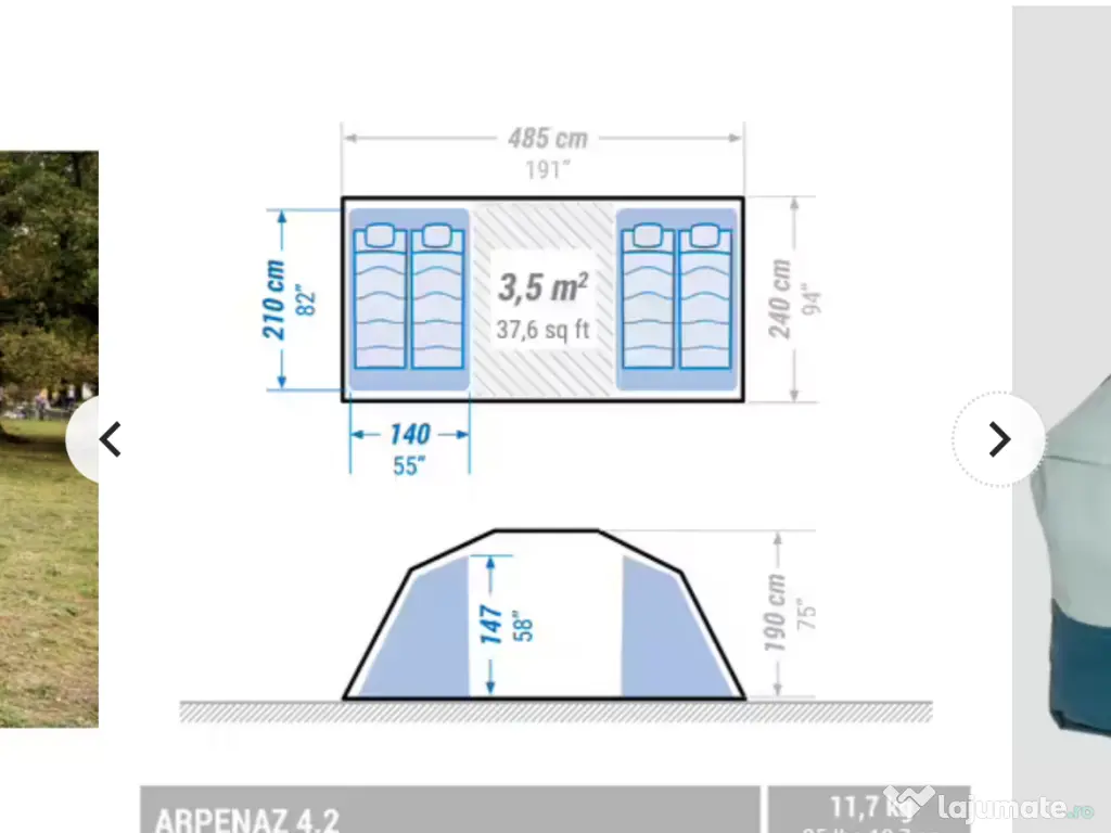 Vând cort în perfectă stare 4 persoane , două camere. L-am folosit de 2 ori.Pret 450 Ron.