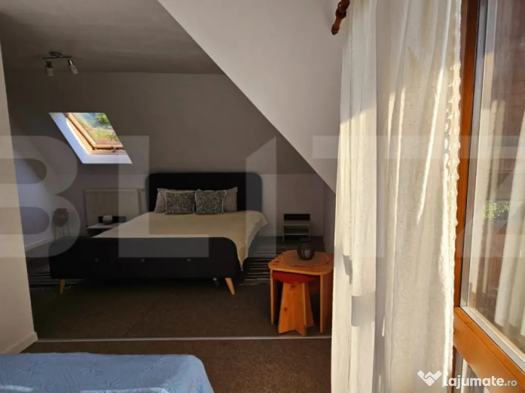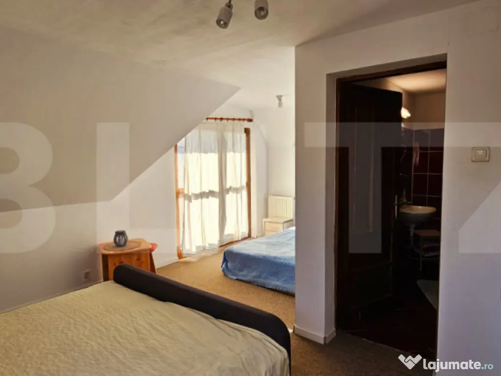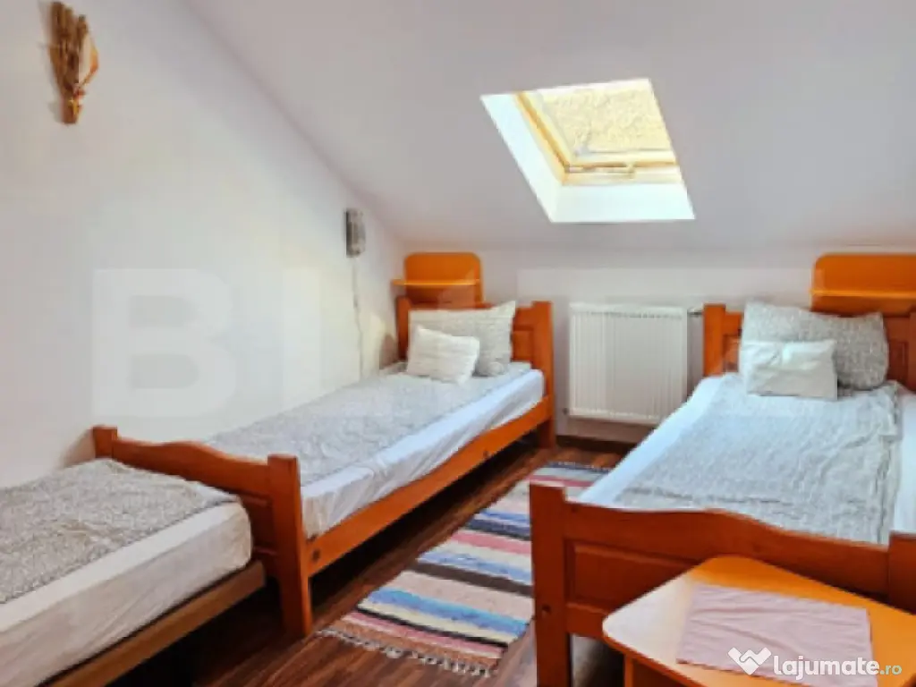 Blitz va prezinta o oportunitate unică de investiție în turismul din inima Transilvaniei! Pensiunea Teglas este situată în localitatea Bicfalău, într-un cadru natural deosebit, liniștit, la marginea unei păduri de brazi, la doar 17 km de Sfântu Gheorghe și 32 km de Brașov. Caracteristici principale: • Suprafață totală teren: 1663 mp (curți construcții). • Suprafață totală utilă clădiri: aproximativ 900 mp. • Compusă din două clădiri distincte: 1. Clădire modernă (construită în 2007) – 593 mp:  Restaurant cu 60 de locuri.  Bucătărie spațioasă, complet utilată.  9 camere cu băi proprii.  Terasă exterioară cu 60 de locuri. 2. Clădire rustică (construită în 2005) – 292 mp:  1 bucătărie completă.  1 cameră de zi.  5 camere duble și 1 apartament, toate cu băi proprii. • Capacitate totală cazare: 32 persoane + 8 locuri suplimentare (16 camere). • În curte se află și o casă veche din anul 1840, ce poate fi renovată cu ușurință pentru a extinde oferta de cazare sau pentru a crea un spațiu tematic autentic. Facilități și dotări: • Saună. • Jacuzzi interior și exterior. • Curent electric trifazat. • Apă potabilă din 2 puțuri proprii, cu sistem de filtrare. • Canalizare proprie. • Încălzire prin centrală termică pe lemne. • Parcare privată generoasă, în incintă. Alte beneficii: • Cadru natural superb, ideal pentru relaxare. • Potențial ridicat de dezvoltare – posibilitate extindere sau amenajare spații tematice. • Locație accesibilă turiștilor români și străini datorită proximității față de Brașov. Transformă această proprietate într-un business de familie sau într-o afacere turistică prosperă. Pensiunea Teglas nu este doar o investiție – este începutul unei povești. ???? Pentru mai multe detalii și vizionări, contactează-ne acum! Cod ofertă / ID BLITZ: P149524 Id intern: P149524 Număr niveluri imobil: 1 Număr Băi: 18 Nr. locuri parcare: 5-10 Curent Apă Canalizare