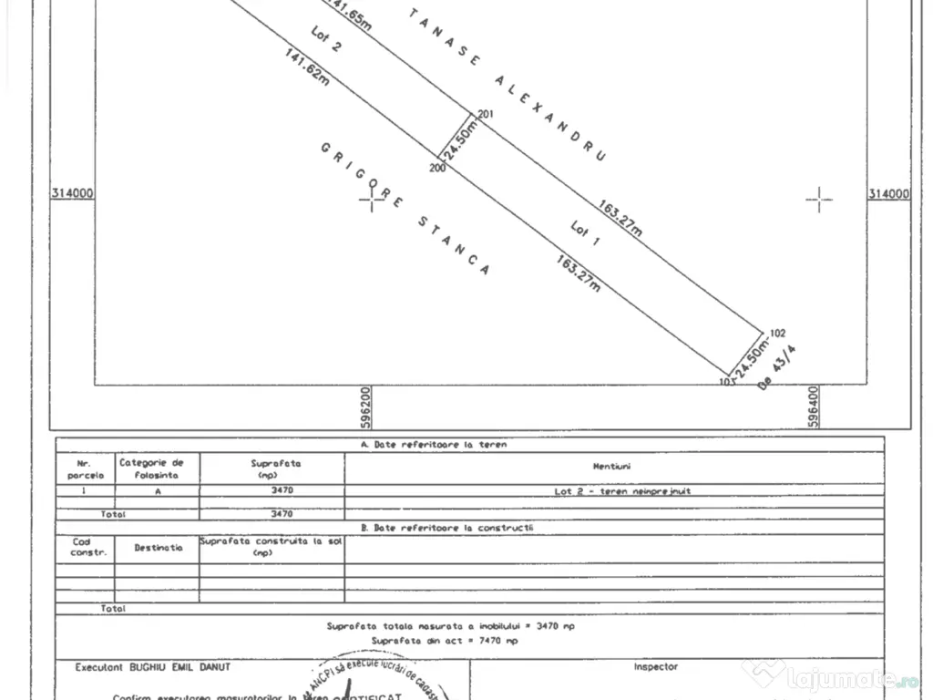 Terenul este pretabil pentru construcția de case, având formă dreptunghiulară și deschidere de 24,5 ml la DE 43/3.