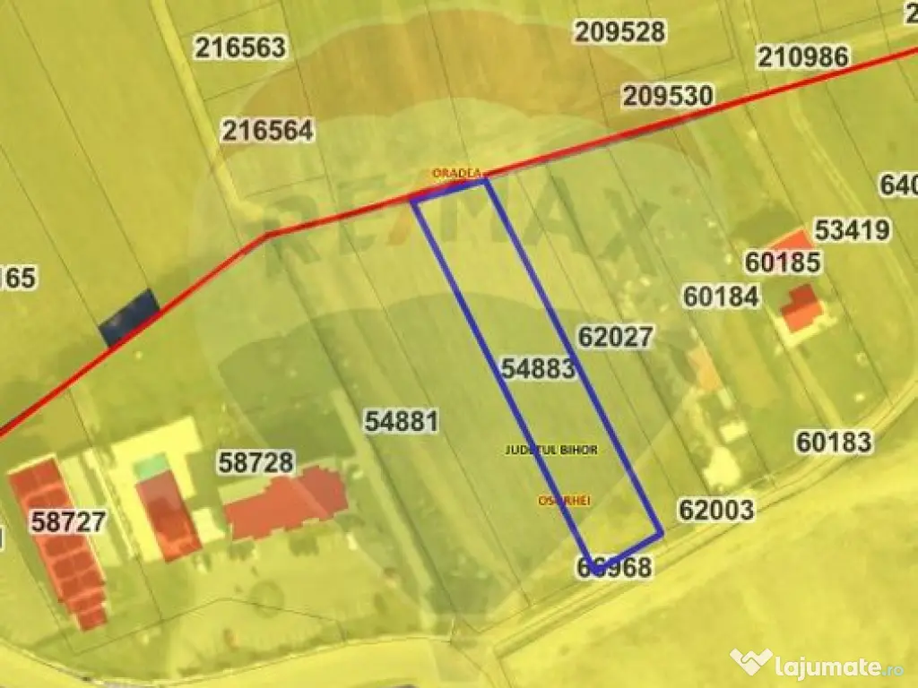 De vanzare in reprezentare eclusiva si comision 0% de la cumparator un teren intravilan cu suprafata de 2374 mp situat pe drumul spre loc. Cheriu, intr-o zona in plina dezvoltare. Se afla la aprox 50 m de drumul spre Cheriu - DC 54, pe un drum secundar pietruit din curba de langa complexul Solay Events. In zona sunt edificate cladiri atat rezidential cat si industrial/servicii, precum si in constructie, strada este racordata de curent, apa si canalizare, iar comuna Osorhei si satul Cheriu sunt in curs de introducere a gazului metan. Este disponibil imediat, situatia juridica clara, front stradal de 21 ml. Topografic se afla chiar la limita cu teritoriul cadastral Oradea. Se preteaza pentru edificarea unor constructii in scop industrial/servicii, construirea unei case pe un teren generos ori parcelare. Conform certificatului de urbanism in baza documentatiel PUG conform HCL 57/2020 sunt permise urmatoarele: - regim juridic - teren intravilan UTR6 - S/Lprl - zona mixta pentru servicii si locuinte; - regim tehnic - teren arabil intravilan, zona mixta pentru servicii si locuinte, constructii noi sau extinderi; - POT maim 30%; - CUT 0,5 - 0,9. Agenția nu percepe comision de la cumpărător. Pentru mai multe detalii sau programarea unei vizionări, nu ezitați să mă contactați. Va astept la vizionare!