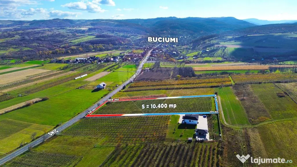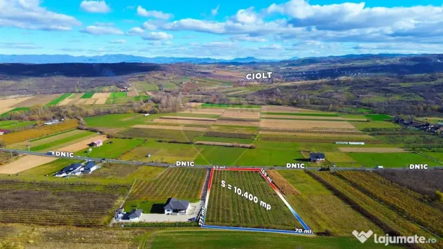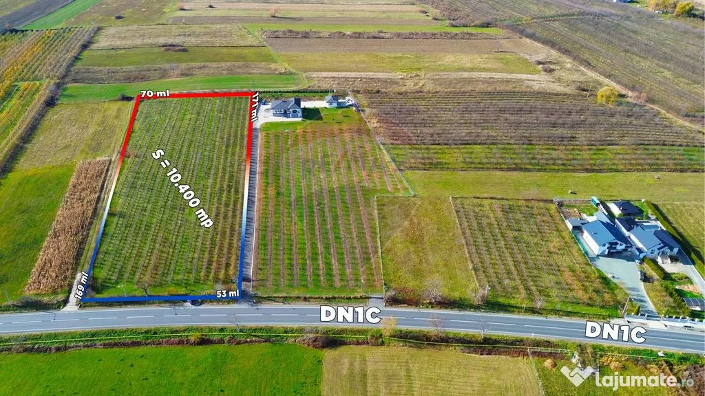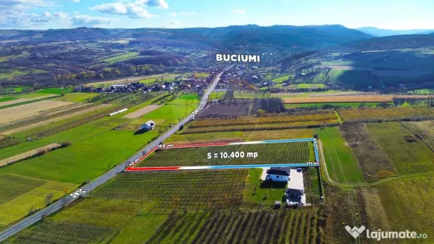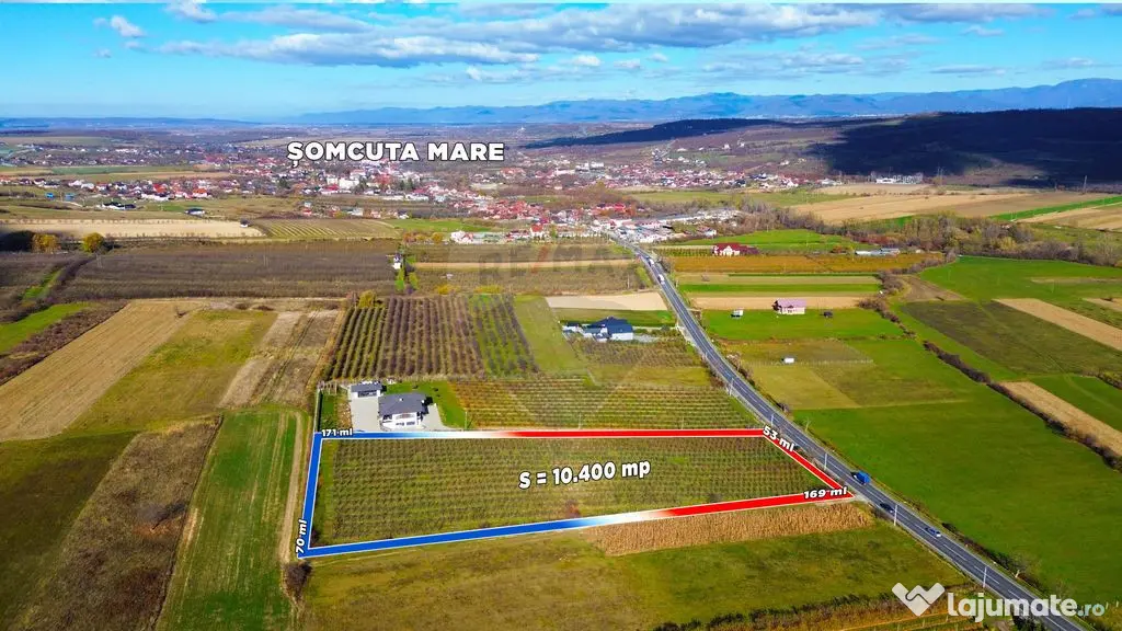 Se oferă spre vânzare un teren intravilan cu o suprafață totală de 10.400 mp (104 ari), situat într-o zonă cu acces direct la Drumul Național Baia Mare – Cluj, beneficiind de front stradal generos, ideal pentru multiple tipuri de investiții.