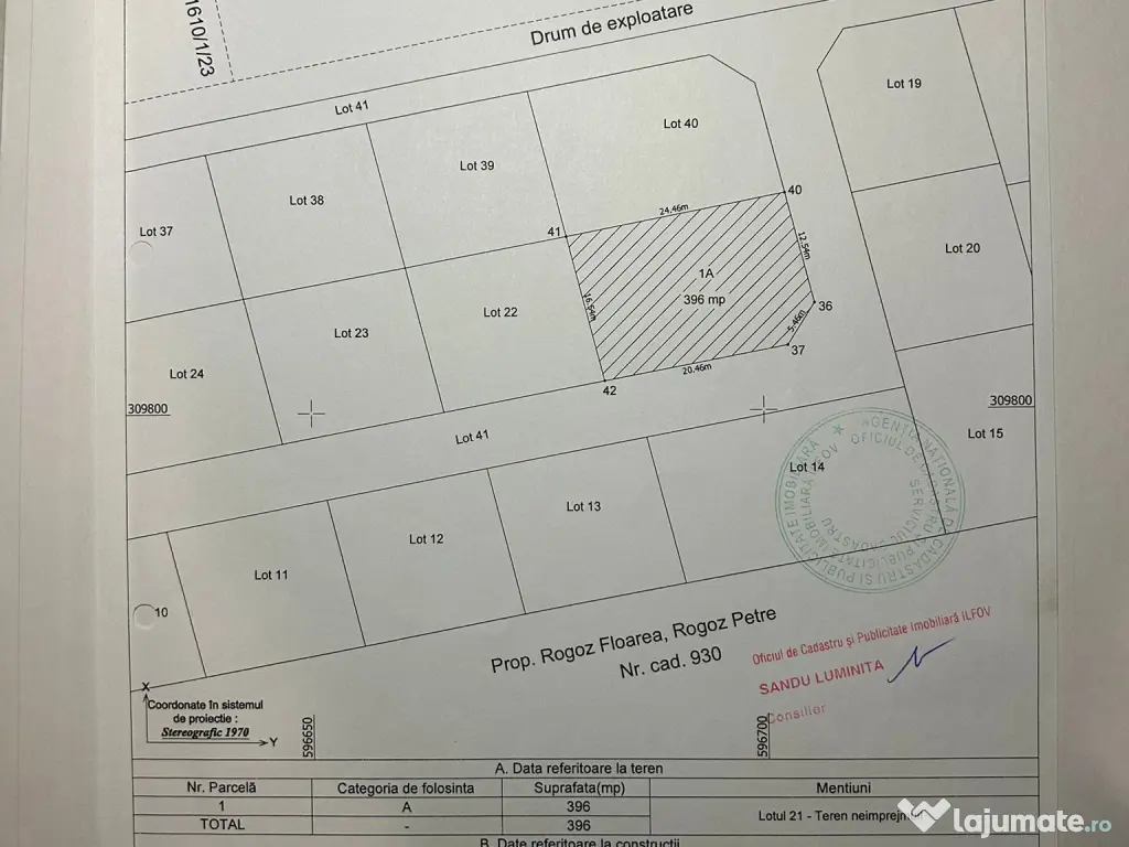 Se vând două loturi de teren intravilan poziționate lângă lac Berceni (100m distanță). Fără utilități