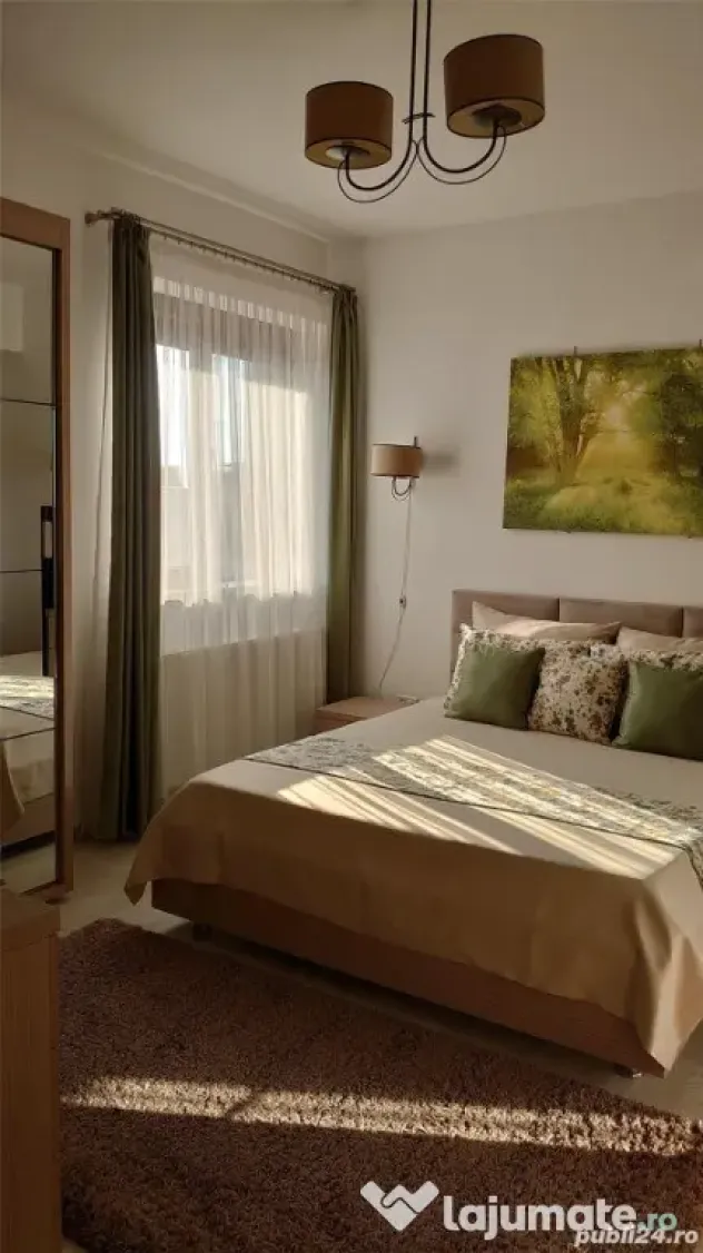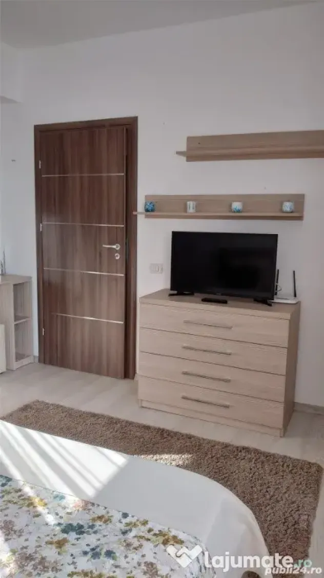 Apartamentul este mobilat utilat complet modern,un dormitor si o sufragerie generoasa.