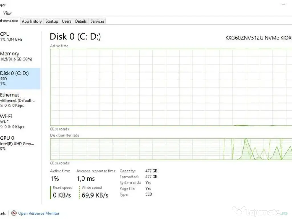 - CPU i7 10850H 6 nuclee 12 thread-uri la 2.7 GHz si turbo 5.1 GHz