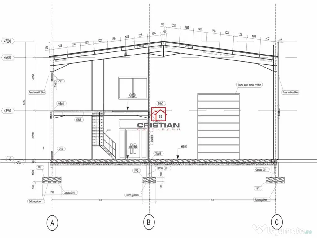 Vanzare depozit/hala/spatiu industrial Chiajna - Centura - Rudeni, Ilfov. Imobil compus din teren suprafata 1.500mp, cladire suprafata 600mp(hala - 480mp, birouri - 120mp), inaltime 7ml, dispusa parter, 1 usa drive in. Spatiu este construit din structura metalica si panouri sandwich. Spatiul dispune de facilitati: apa(put), canalizare(fosa), gaze, curent electric 220 ndash; 380kw. Spatiul se preteaza pentru activitati industriale/logistice/depozitare. Spatiul dispune de locuri de parcare in curte. Disponibil in 4-6luni din momentul semnarii unei promisiuni de cumparare. Pret ndash; 565.000euro tva COMISION AGENTIE 3% Suprafaţă totală: 600 m² Suprafaţă birouri: 600 m² An finalizare construcție: 2022 Stadiu construcţie: Finalizat Înălţime spaţiu: 3 m Număr încăperi: 3 Număr Grupuri Sanitare: 2 Tip imobil: Producţie/Servicii