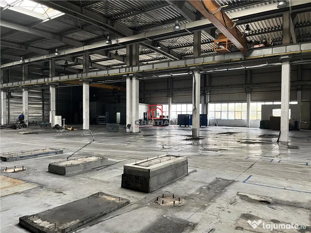 Inchiriere depozit/hala/spatiu industrial Militari - Timisoara - CET Vest, Bucuresti. Imobilul este compus cladiri suprafata hala - 15.000mp, inaltime 8-9 ml, dispus pe parter, platforma betonata 15.000mp. Spatiu are structura beton si inchideri perimetrala din panouri sandwich, accesul in spatiu se face prin 6 usi tip drive in. Proprietatea beneficiaza de utilitati: - Energie electrica ndash; bransament E-Distributie Muntenia Sud putere 4MW; - Gaze naturale ndash; bransament Distrigaz retele sud joasa presiune 0.33MWh/h 1000-1500mc/h; Apa rece: bransament Apa Nova dn - 40mm, foraje Apele Romane adancime H-205m, dn-160mm, debit de 2.5l/s; - Canalizare - racord Apa Nova dn-300mm. Spatiul se preteaza pentru activitati de depozitare/logistica/productie/industrial. Disponibil imediat. Pret - 75.000euro/luna TVA COMISION AGENTIE 50-100% din prima luna de chirie Suprafaţă totală: 15000 m² Suprafaţă birouri: 15000 m² An finalizare construcție: 1980 Stadiu construcţie: Finalizat Înălţime spaţiu: 3 m Număr încăperi: 20 Număr Grupuri Sanitare: 8 Tip imobil: Producţie/Servicii
