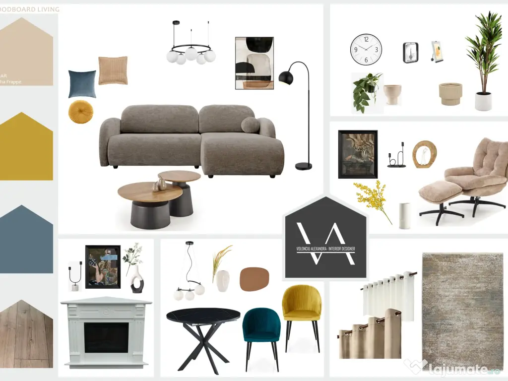✅ Moodboard – Conceptul de culori și materiale.