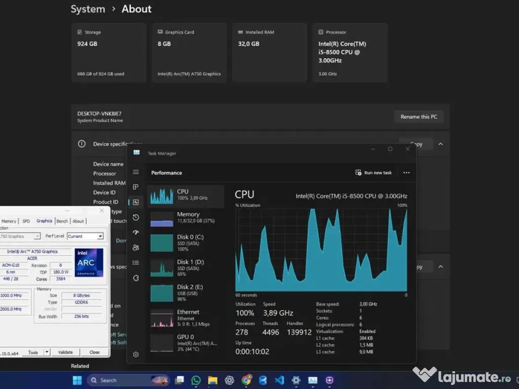 - Placa Video Intel ARC A750 8 GB 256 bits