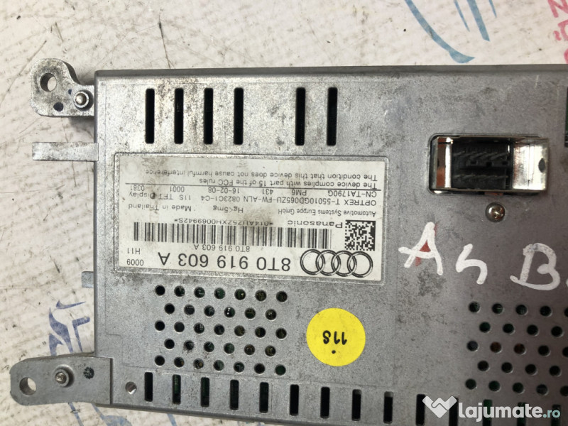 Display navigatie Audi A4 B8 2008. Cod(uri): 8T0919603A. Piesele comercializate sunt originale, provenite din dezmembrari. Dispunem de o gama larga de piese multimarca. Piesele sunt verificate inainte de a fi puse spre vanzare. In caz de neconformitate piesa se poate returna. Va rugam sa verificati disponibilitatea pieselor telefonic. Trimitem in tara prin curier. Marcă: Audi Producător: Audi