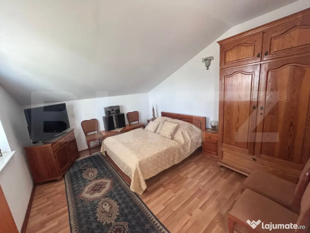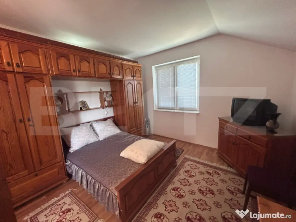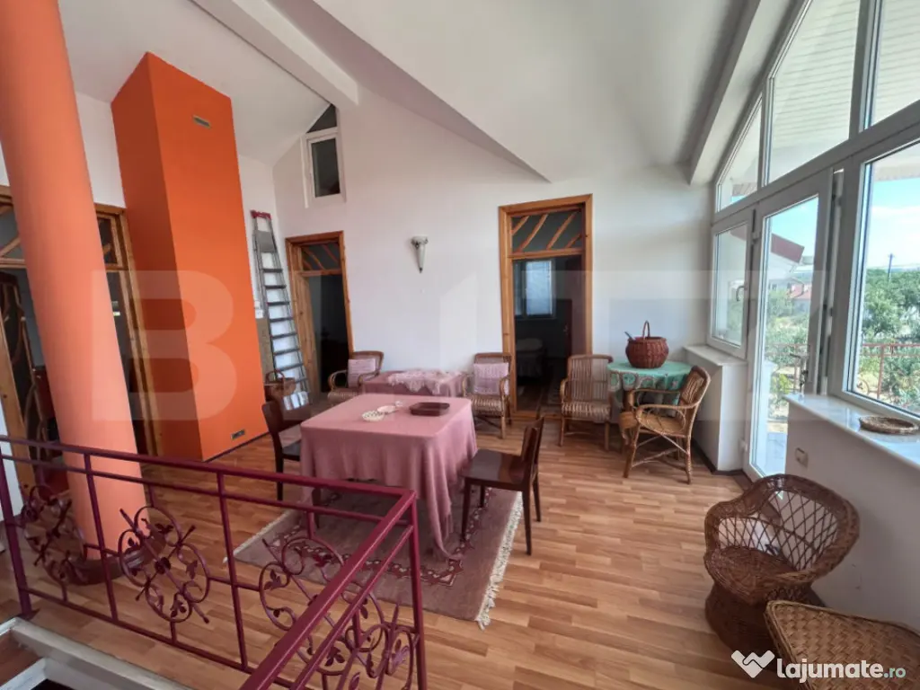 Blitz vă propune spre achizitie o proprietate unică, ideală pentru cei care caută liniștea naturii fără a renunța la confortul modern situata in judetul Olt, localitatea Oboga. Situată pe un teren impresionant de 17.000 mp, această casă solid construită în perioada 2007-2008 oferă 300 mp utili, compartimentați eficient pe două niveluri. Compartimentare: Parter: living generos cu șemineu, bucătărie complet funcțională, un dormitor, baie, acces către crama/beciul încăpător Etaj: 3 dormitoare luminoase, birou ideal pentru lucru de acasă, hol spațios și o baie Dotări și facilități: Încălzire în pardoseală pe toată suprafața, asigurată de centrală electrică proprie – confort și eficiență Șemineu funcțional – element de design și sursă suplimentară de căldură 9 panouri fotovoltaice (3 kW) – independență energetică Fântână forată la 85 m – sursă proprie de apă potabilă Sistem de picurare în grădină – ideal pentru cultivare sau amenajare peisagistică Gaze la poartă – disponibile pentru racordare Foișor pentru relaxare în aer liber, pomi fructiferi și dependințe funcționale Această proprietate este alegerea ideală pentru o familie numeroasă, o casă de vacanță, un retreat departe de oraș sau chiar o investiție în turismul rural. Pentru mai multe detalii, va asteptam cu drag la vizionare! Cod ofertă / ID BLITZ: P150164 Id intern: P150164 Număr niveluri imobil: 1 Număr Băi: 2 Nr. locuri parcare: 5-10 Curent Apă Canalizare Gaz