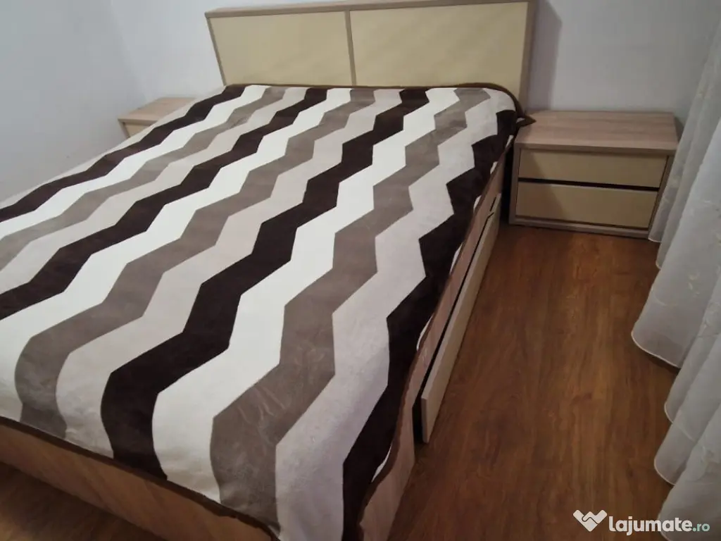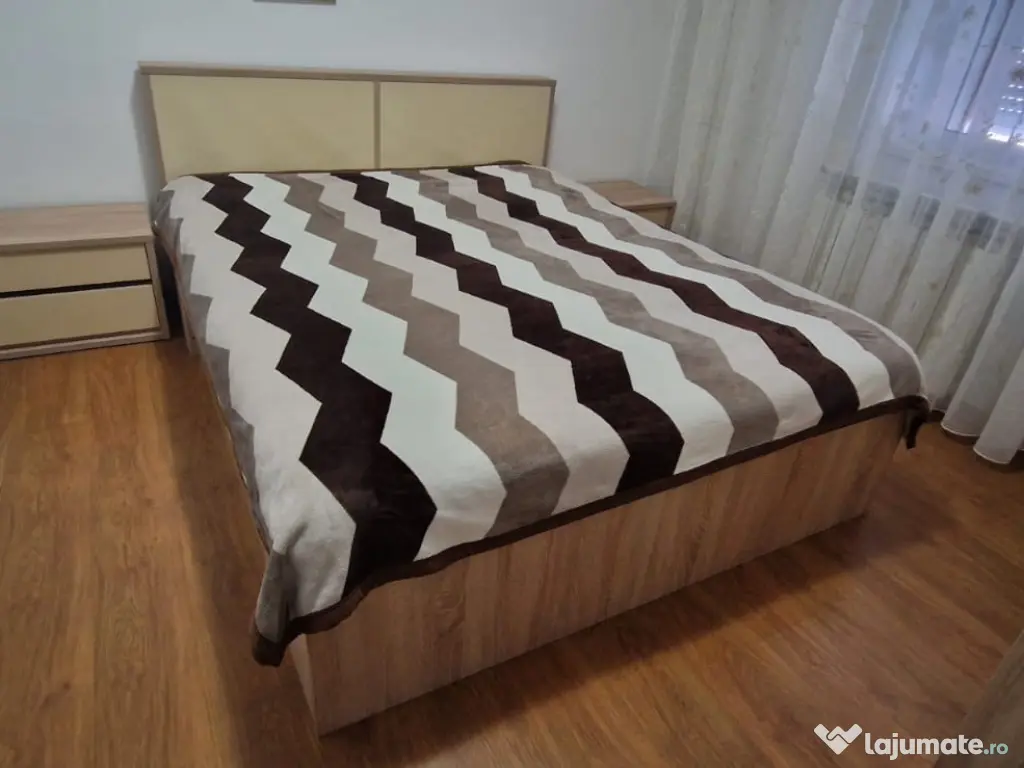 Mobilier de dormitor în stare bună format din dulap, pat matrimonial, somiera, saltea, 2 noptiere.