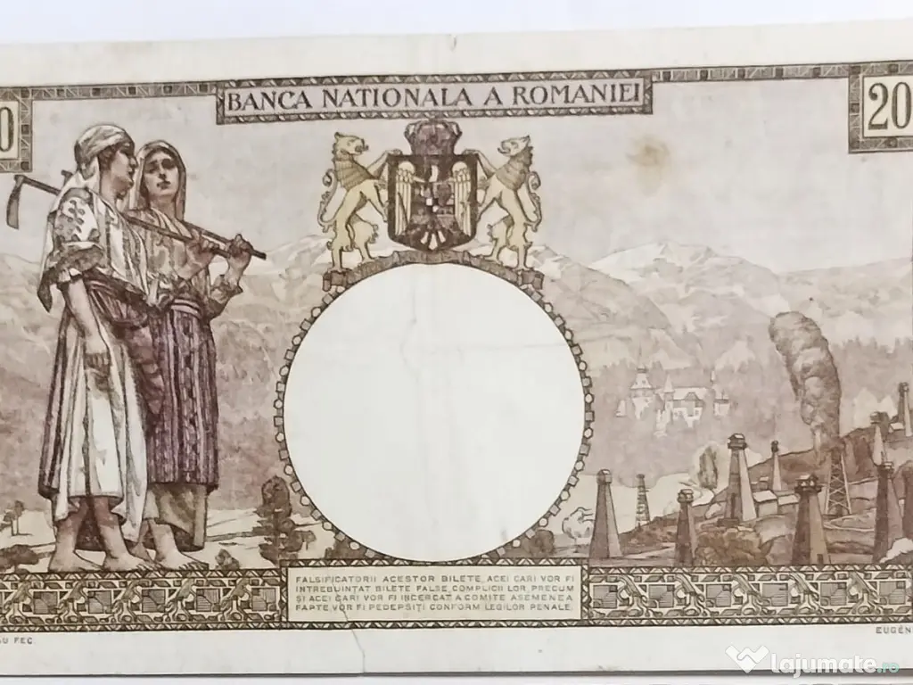 Vând doua bancnote de 2000 LEI, emisa pe 23 Martie 1943, o piesă deosebită din perioada celui de-al Doilea Război Mondial.
