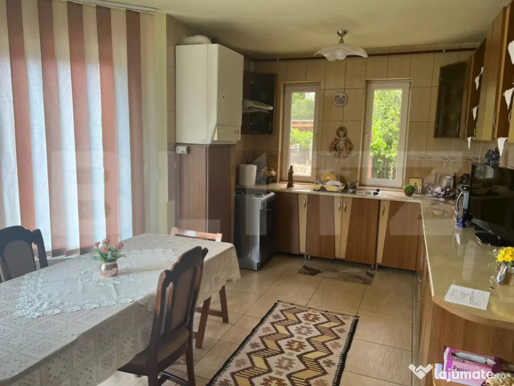 Blitz propune spre vânzare două case construite în regim propriu, situate pe un teren generos de 1000 mp în Târgu Mureș. Proprietatea este compusă din două locuințe, complet mobilate și utilate, cu toate utilitățile disponibile: apă, canalizare, gaz, electricitate. Casa principală are o suprafață utilă de 166 mp, construită în 2008 pe fundație de beton, din cărămidă, cu acoperiș din țiglă, izolată cu polistiren și dotată cu geamuri termopan. Dispune de încălzire centrală pe gaz și un sistem suplimentar de termosemineu cu pompă de căldură. Compartimentare: Demisol: două camere (bucătărie de vară și spațiu pentru spălător/uscător) Parter: living spațios, bucătărie open-space, baie, hol și casa scării Mansardă: trei dormitoare, dintre care unul cu baie proprie, o baie pe hol, cu acces la pod Podul este izolat cu vată și podit Casa dispune de o terasă mare acoperită și două balcoane Casa secundară are o suprafață utilă de 62 mp și este compartimentată astfel: Demisol: două pivnițe Parter: două camere și o baie Etaj: o cameră spațioasă Curtea este complet amenajată, cu: Două carporturi acoperite pentru mașini Zonă de grătar Alee pavată cu acces auto Grădină cu pomi fructiferi și zonă pentru legume Proprietatea este situată într-o zonă liniștită și bine conectată, cu acces rapid la facilități urbane. Este ideală pentru o familie numeroasă sau ca investiție, oferind două locuințe independente și toate condițiile necesare pentru confortul modern. Vă așteptăm cu încredere la vizionare. Cod ofertă / ID BLITZ: P149917 Id intern: P149917 Număr niveluri imobil: 1 Număr Băi: 3 Curent Apă Canalizare Gaz
