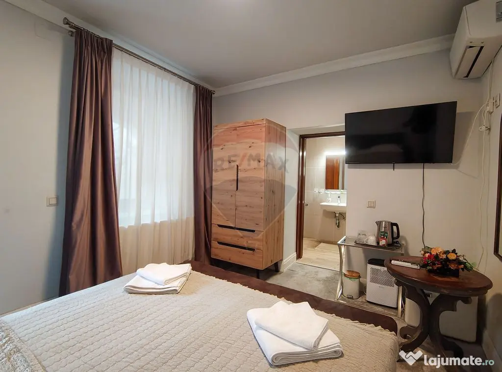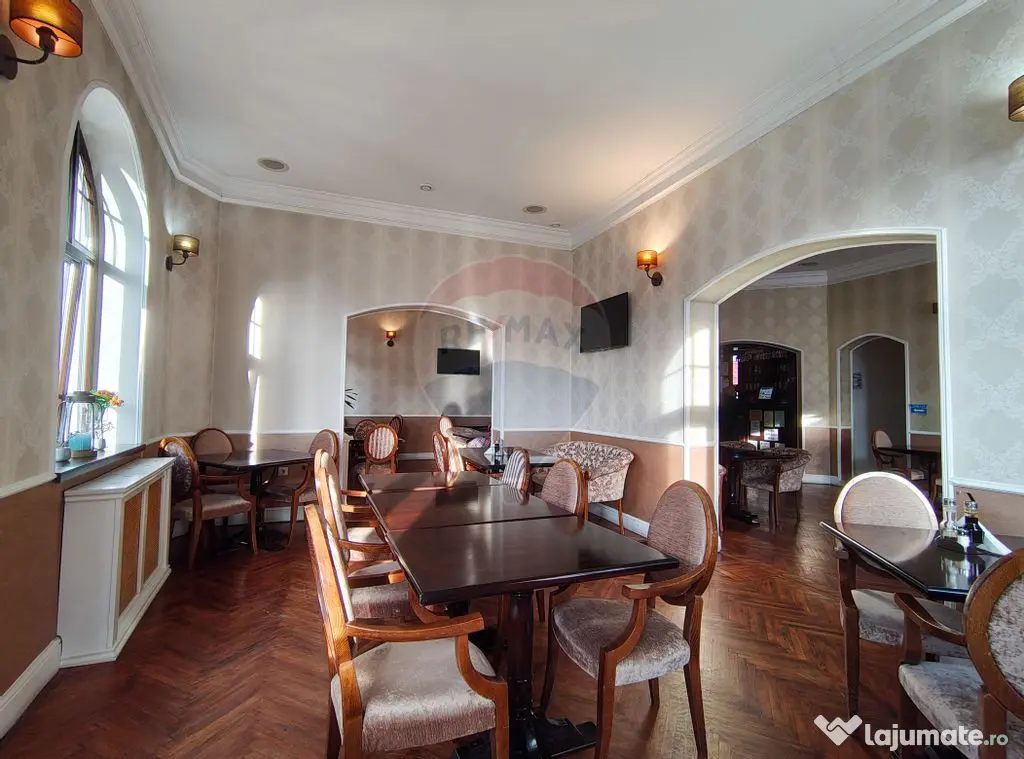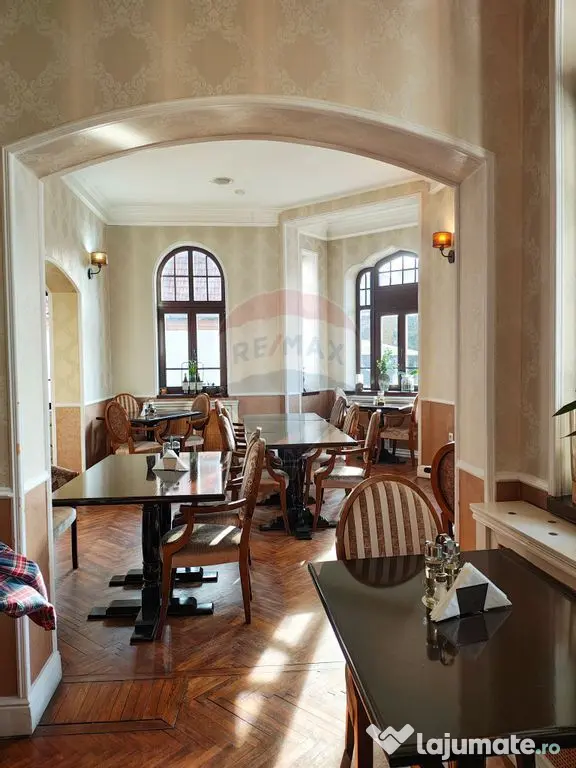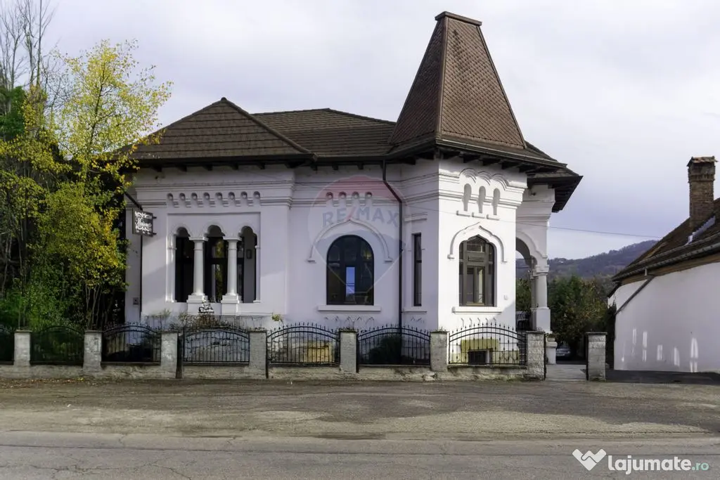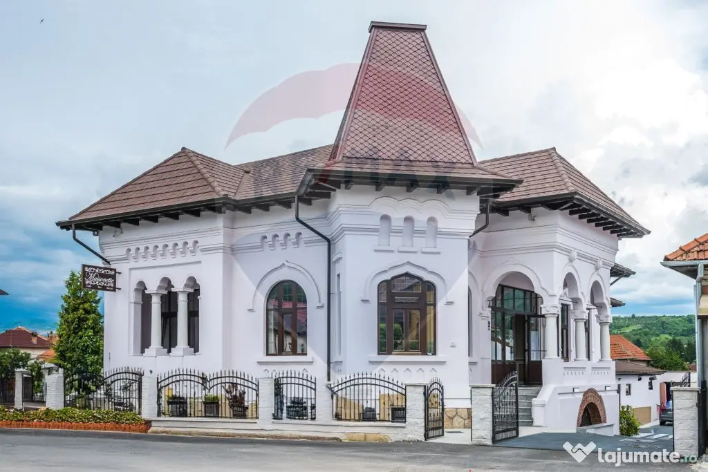 A doua vilă, construită în anii ’20 și renovată integral în 2020, păstrează farmecul arhitecturii interbelice, reinterpretat în ton contemporan. Cu o structură P+1+M, aceasta cuprinde 6 camere generoase, la care se adaugă un spațiu amplu la mansardă, ce permite amenajarea a încă două camere. Este o clădire versatilă, potrivită pentru activități comerciale, turistice sau pentru utilizare rezidențială.