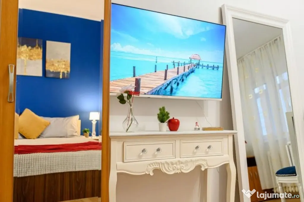 - Ready to move in: Totul este proaspăt vopsit și igienizat. Ai electrocasnice noi (TV, aragaz, mașină de spălat), plus frigider și aer condiționat pentru un confort total.