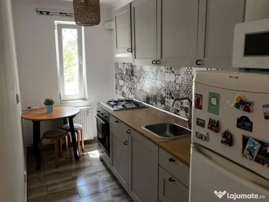 spre închiriere garsonieră, complet mobilată și utilată, dotată cu cablu tv și internet. Garsonieră spațioasă, 34mp, situată la parterul înalt al unui bloc mixt de pe strada Aleea Râmnicu Vâlcea. În apropiere: metrou Dristor (400m reali), Lidl, McDonald’s, mall ParkLake, piață, parcuri. Nu se acceptă animale de companie! Confort: 1 Tip imobil: Bloc de apartamente Comision cumpărător: 50%