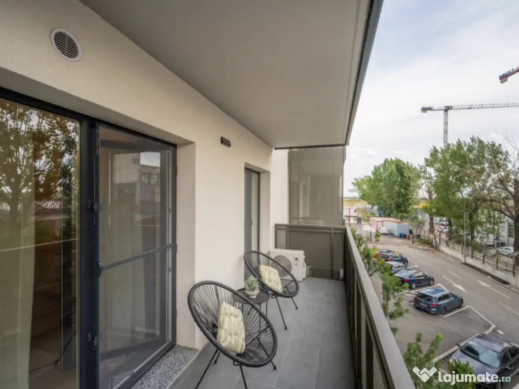 Nou pe piata ! Comision 0 % la inchiriere !  Apartament complet mobilat si utilat, Loc de parcare subteran inclus in pret.  Va prezint spre inchiriere un apartament cu 2 camere situat in noul proiect imbiliar construit de dezvoltatorul Hercesa, Stellaris Faza 1, imobil finalizat ce a fost predat in folosinta in luna februarie 2025. Stellaris este un proiect construit in 4 faze, din care faza 1 este finalizata iar faza 2 este in curs de finalizare.  Apartamentul are vedere spre Vest- spre Tamilia si nu spre Stadionul Ghencea si fazele urmatoare ale proiectului.  Apartamentul este situat la etajul 2/11, are o suprafata utila de 50 mp la care se adauga o terasa generoasa in suprafata de 8mp, rezultand o suprafata totala de 58 mp.  Apartamentul este complet finisat, dotat cu centrala termica proprie, sistem de incalzire prin pardoseala, 1 aparat de aer conditionat instalat in living. Este full echipat, mobilat, utilat si decorat in cel mai mic detaliu.  Bucataria este mobilata si utilata cu toate electrocasnicele necesare: masina de spalat vase, plita, cuptor, hota, frigider, toate incorporate in mobilier, noi si in garantie( marca Electrolux). Mobilierul de bucatarie oferta foarte multe spatii pentru depozitare.  Livingul este amenajat modern cu o canapea extensibila, loc de dining pentru 4 persoane si o comoda Mobexpert cu Smart TV nou. Dormitorul este complet mobilat cu dressing generos, pat matrimonial cu saltea si doua noptiere.  Baia este si ea full echipata cu obiecte sanitare noi, spatii de depozitare si masina de spalat rufe.  Apartamentul este modern amenajat, decorat cu perdele, corpuri de iluminat moderne (Mobexpert). Terasa are acces atat din living cat si din dormitor si este amenajata cu 2 fotolii de exterior si o masuta de cafea.  Imobilul este dotat cu 2 lifturi, acces securizat, modern executat si decorat, dotat cu sistem de incalzire inclusiv pe casa scarii. Imobilul are spatii de recreere, alei amenajate, spatii verzi, teren de baschet, parcari pentru vizitatori. Se inchiriaza pe termen lung cu contract inregistrat ANAF.  Id intern: MA20414 Confort: 1 Tip imobil: Bloc de apartamente Număr Băi: 1 Comision cumpărător: 0% Nr. locuri parcare: 1
